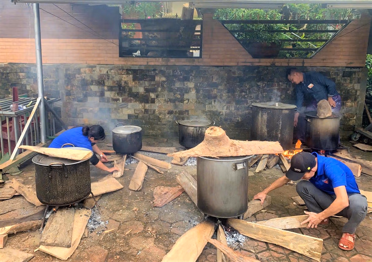 Còn chị Nguyễn Thị Hà Tiên, ở xã Trà Bồng cho biết, tất cả các nguyên liệu gói bánh từ nếp, đậu xanh, lá chuối, tre, lạt… đều được người dân chuẩn bị. Nhà ai có gì thì góp nấy. Sau khi gói xong, toàn bộ số bánh sẽ được nấu bằng củi xuyên đêm để đoàn kịp xuất phát đến các điểm bị ảnh hưởng nặng bởi mưa lũ ở tỉnh Đắk Lắk.