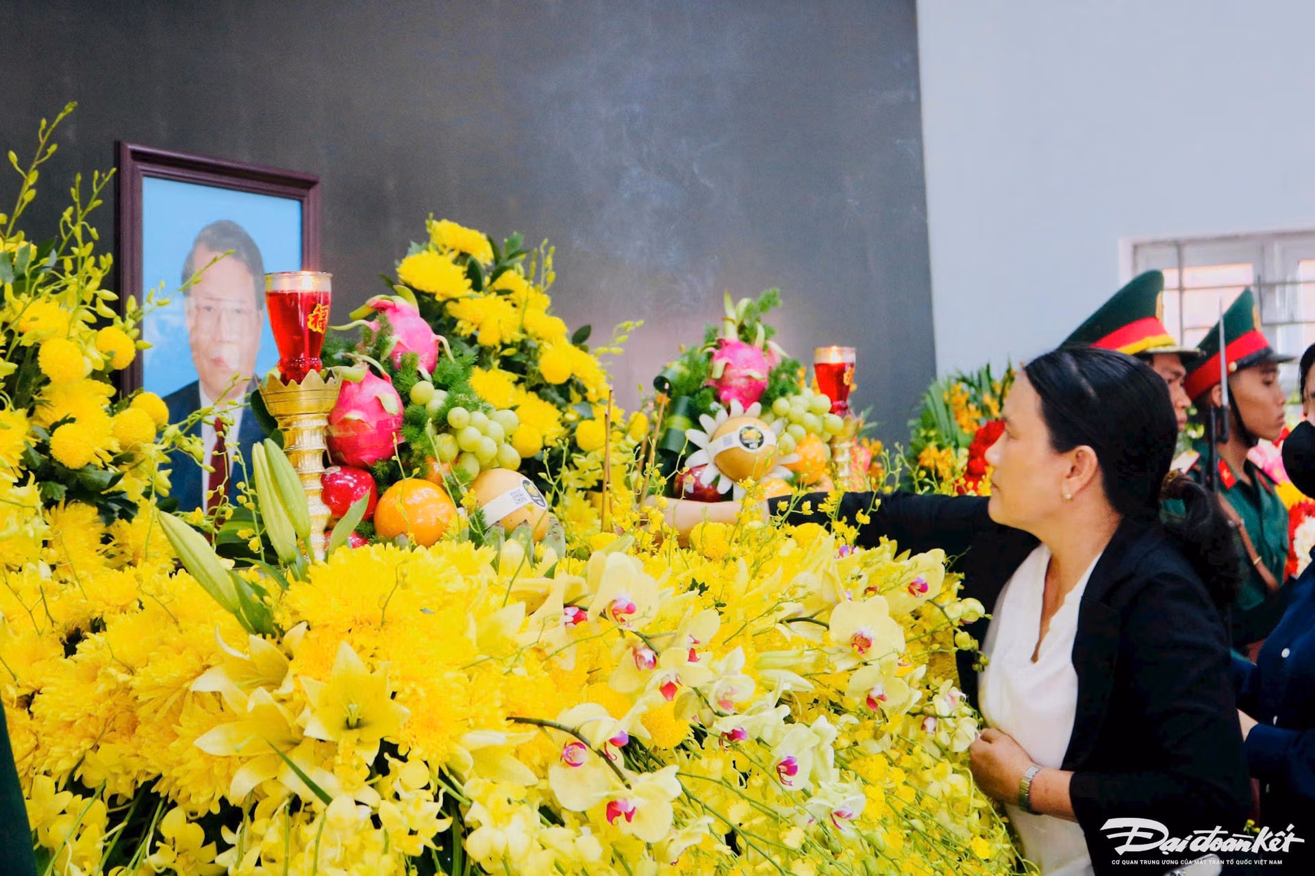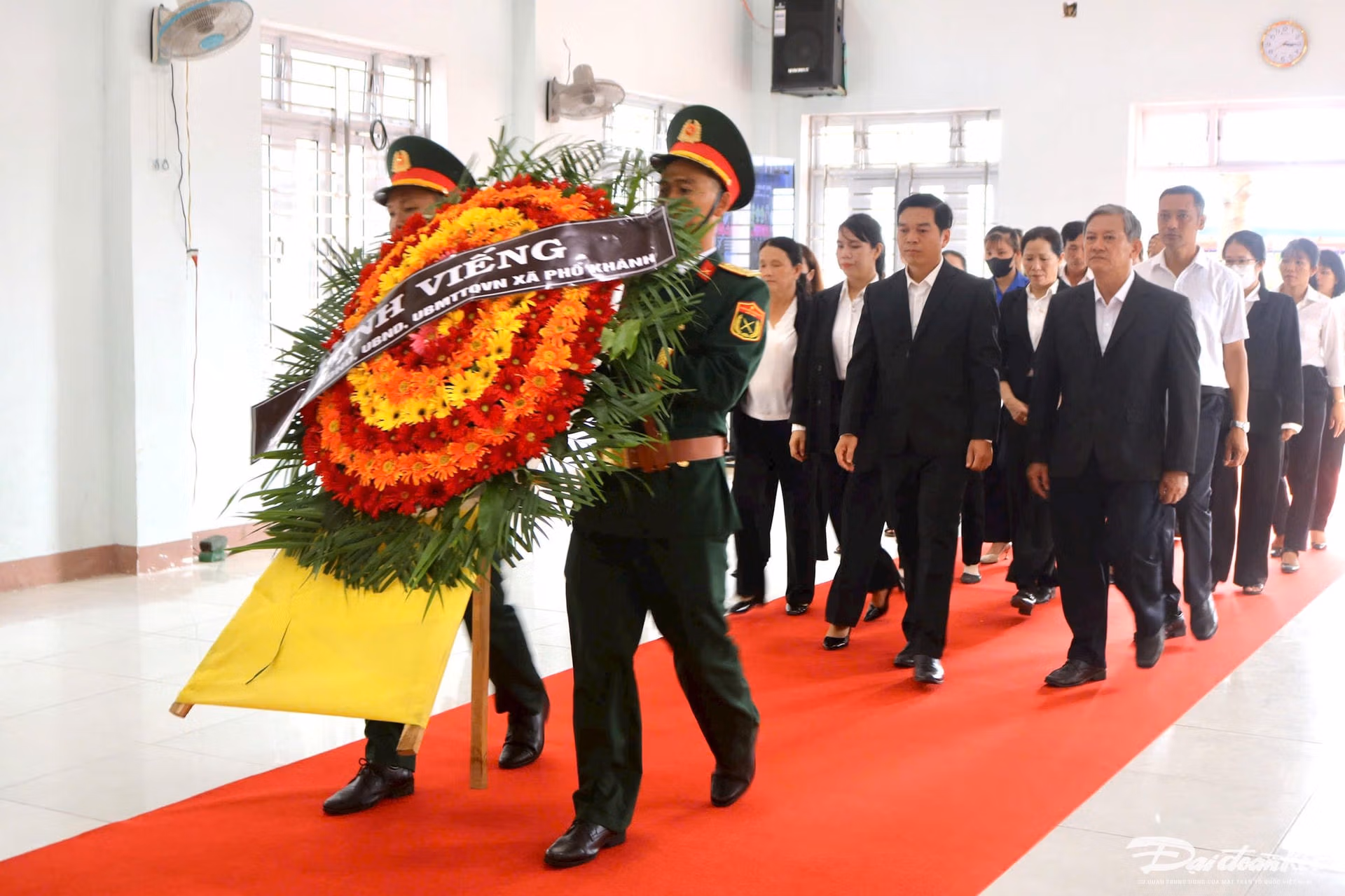 Ngoài sân của UBND xã Phổ Khánh, các đoàn thể, thanh niên, chính quyền địa phương kết vòng hoa đặt trên bàn ngay dưới di ảnh nguyên Chủ tịch nước Trần Đức Lương, trong hội trường, bục dâng hương tưởng niệm đã được hoàn thành trong đêm, trang nghiêm, thành kính.