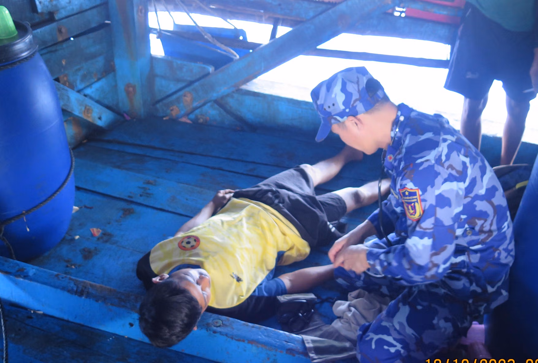 Ngay sau khi nhận được tin báo tàu cá bị nạ tàu cá của bà bị phá nước, có nguy cơ chìm tàu trên biển, vào lúc 6h20’ cùng ngày, bà Đặng Thị Nhung (42 tuổi), ở xã Bình Sơn, tỉnh Quảng Ngãi) là chủ tàu cá QNg 90704 TS đến Trạm Kiểm soát Biên phòng (TKSBP) Bình Thạnh báo tin,.