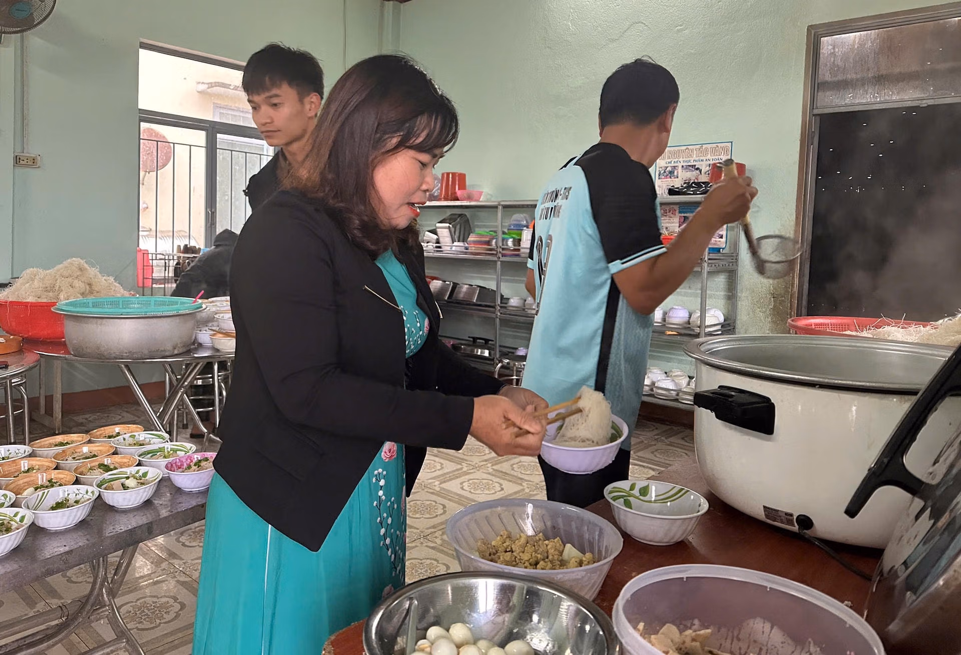 Phương án này nhận được sự đồng tình của phụ huynh, bắt đầu triển khai từ năm học 2025-2026. Ba ngày nay, khi năm học mới chính thức diễn ra, 10 giáo viên của trường vào bếp nấu ăn sáng cho học sinh với thực đơn luân phiên các món như phở, mì Quảng, nui, cháo...