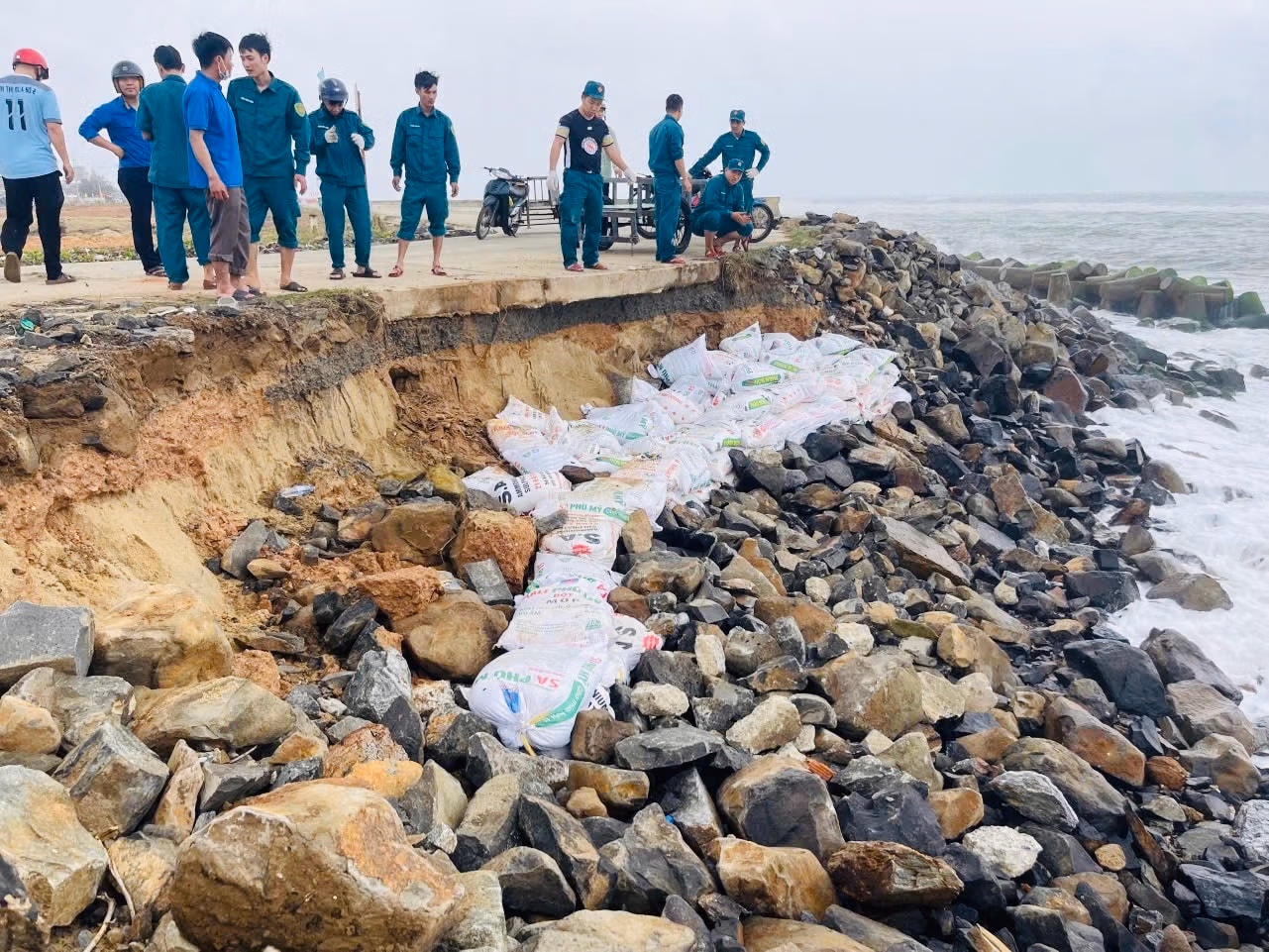 Theo báo cáo của UBND xã An Phú, từ ngày 4/2 đến nay, do ảnh hưởng của gió Đông Bắc, triều cường xuất hiện với cường độ mạnh nên tại khu vực điểm cuối bờ kè ở thôn Phổ An bị sạt lở và xâm thực vào đường kè bê tông một đoạn dài khoảng 40m, khoét sâu vào kè bê tông 0,5m. Hiện nay, tình trạng sạt lở có khả năng tiếp tục xảy ra và có nguy cơ ảnh hưởng đến kè chống sạt lở ven biển thôn Phổ Trường và đời sống của 30 hộ dân.