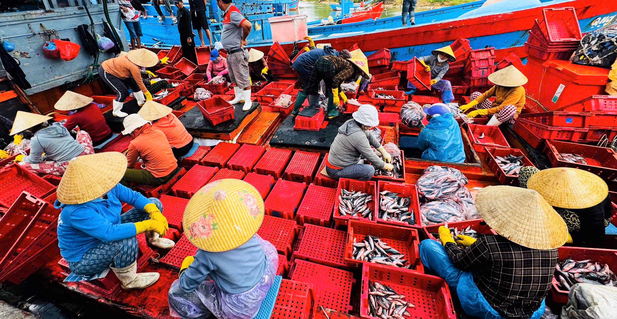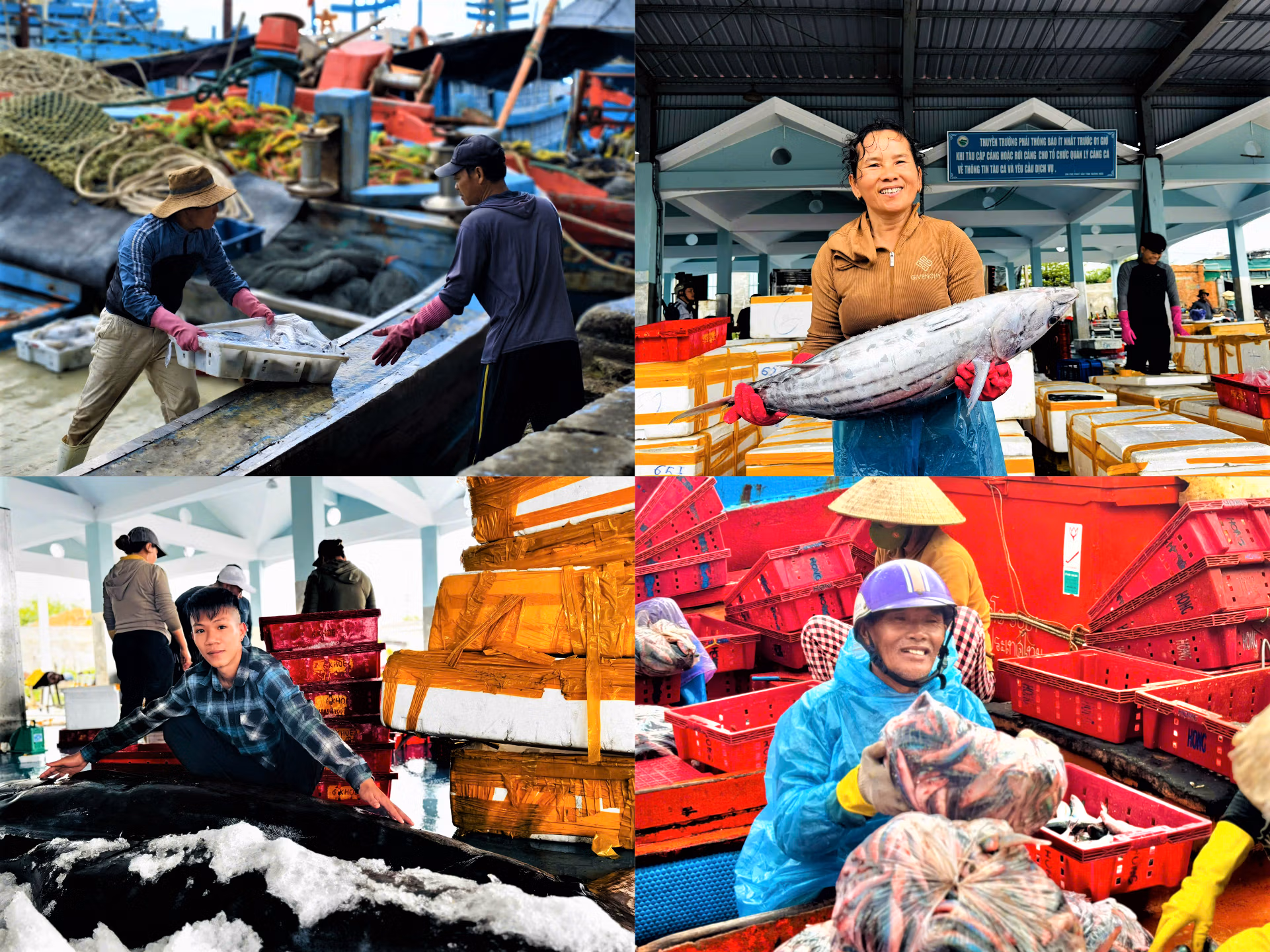 Tại các cảng cá Sa Kỳ, Tịnh Hòa, xã Đông Sơn, Tịnh Kỳ, xã Tịnh Khê, Mỹ Á, phường Trà Câu, tỉnh Quảng Ngãi, tàu ra vào tấp nập từ sáng sớm đến chiều muộn. Thương lái, xe tải túc trực sẵn chờ thu mua, những mẻ cá tươi được nhanh chóng đưa lên bờ trong không khí khẩn trương của mùa biển cuối năm.