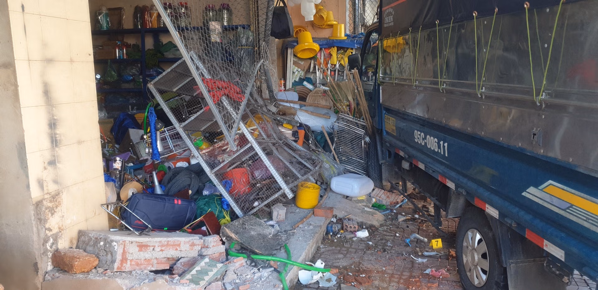 Theo đó, lúc 15h30’ cùng ngày, tại Km 1077+750, trên quốc lộ 1A, đoạn qua tổ dân phố 1, thị trấn Mộ Đức, tỉnh Quảng Ngãi, xe tải BKS: 95C-006.11 (chưa rõ tài xế) đang điều khiển lưu thông hướng từ Nam ra Bắc. Khi tài xế xe tài điều khiển đến địa điểm trên thì bất ngờ tông vào nhà bà Diệu.
