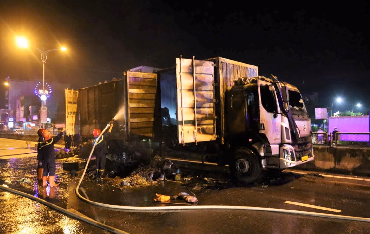 Một vụ cháy xe tải chở hàng hóa xảy ra vào tối 24/8 trên quốc lộ 1A, đoạn qua xã Tư Nghĩa, tỉnh Quảng Ngãi, khiến hàng hóa trên xe bị thiêu rụi.