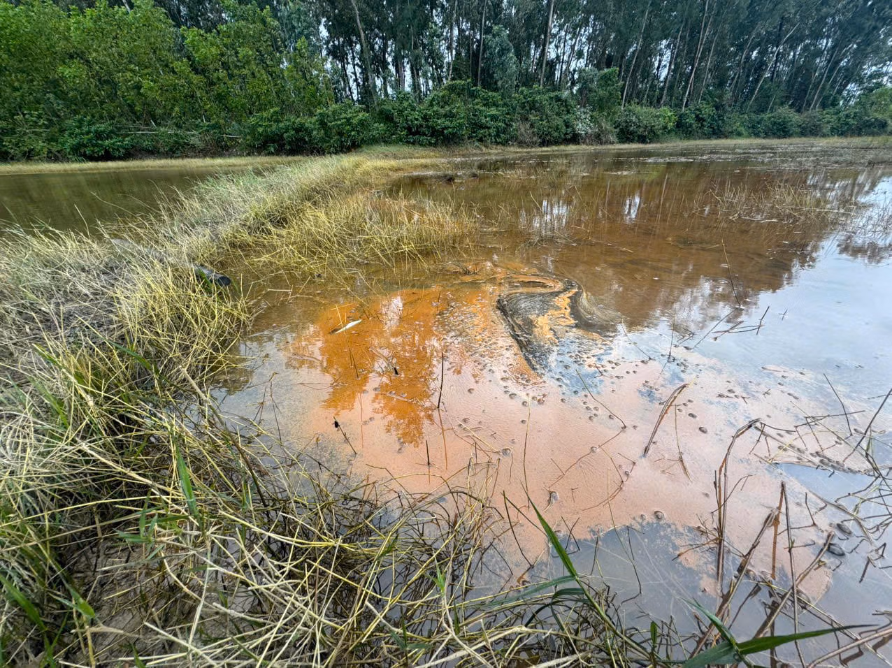 Trước đó, sáng 24/12, người dân thôn Thuận Phước phản ánh nguồn dầu từ Phân kho 85/Kho 182, đóng tại thôn Tuyết Diêm 3, xã Vạn Tường bị tràn ra đồng ruộng của người dân đang chuẩn bị xuống giống lúa vụ Đông Xuân 2025-2026, đồng thời chảy xuống đoạn sông từ cầu Sông Đầm đến khu vực Bầu Cá Cái.