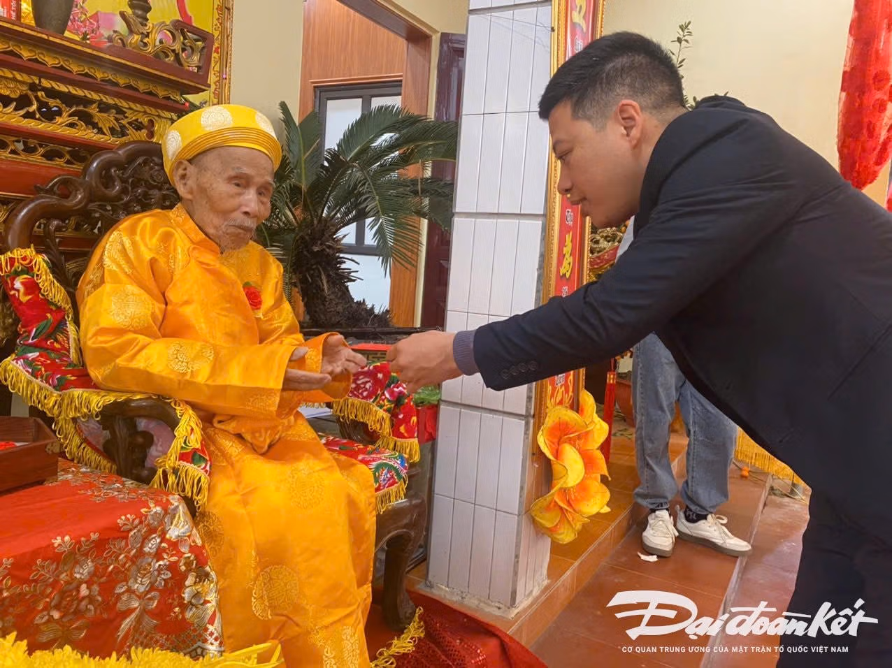 Chiếc áo vàng may từ tấm vải Chủ tịch nước tặng, mấy hôm nay luôn được đặt bên cạnh, để ngủ dậy là cụ lại cầm lên tay, mân mê như một khối tài sản vô giá.