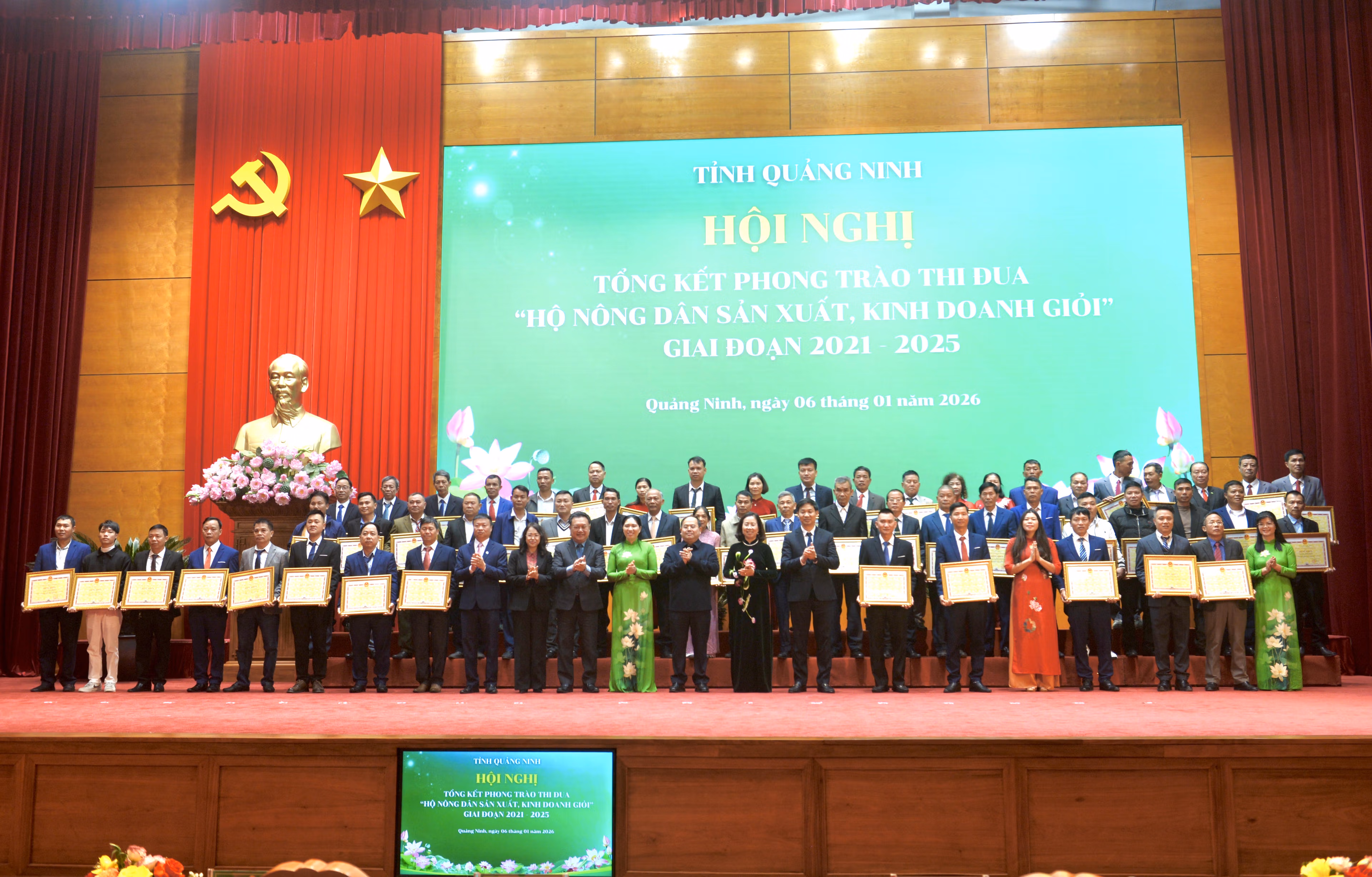 Nhân dịp này, 55 hộ nông dân đã được nhận Bằng khen của Chủ tịch UBND tỉnh Quảng Ninh vì có thành tích xuất sắc trong phong trào “Hộ nông dân sản xuất kinh doanh giỏi” trên địa bàn tỉnh giai đoạn 2021 - 2025.