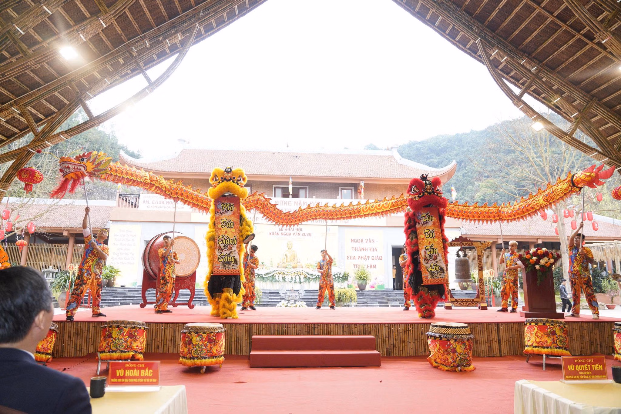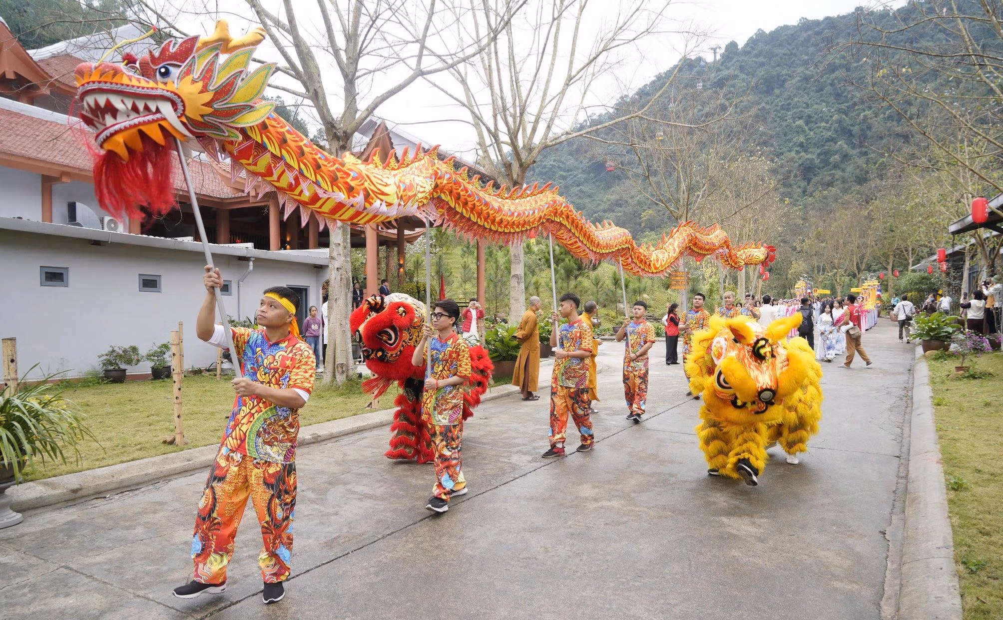 Các tiết mục múa sư - lân - rồng, hợp xướng “Ngọa Vân ca”, ca nhạc và ngâm thơ tạo nên bầu không khí rộn ràng, phấn khởi của mùa Xuân mới.