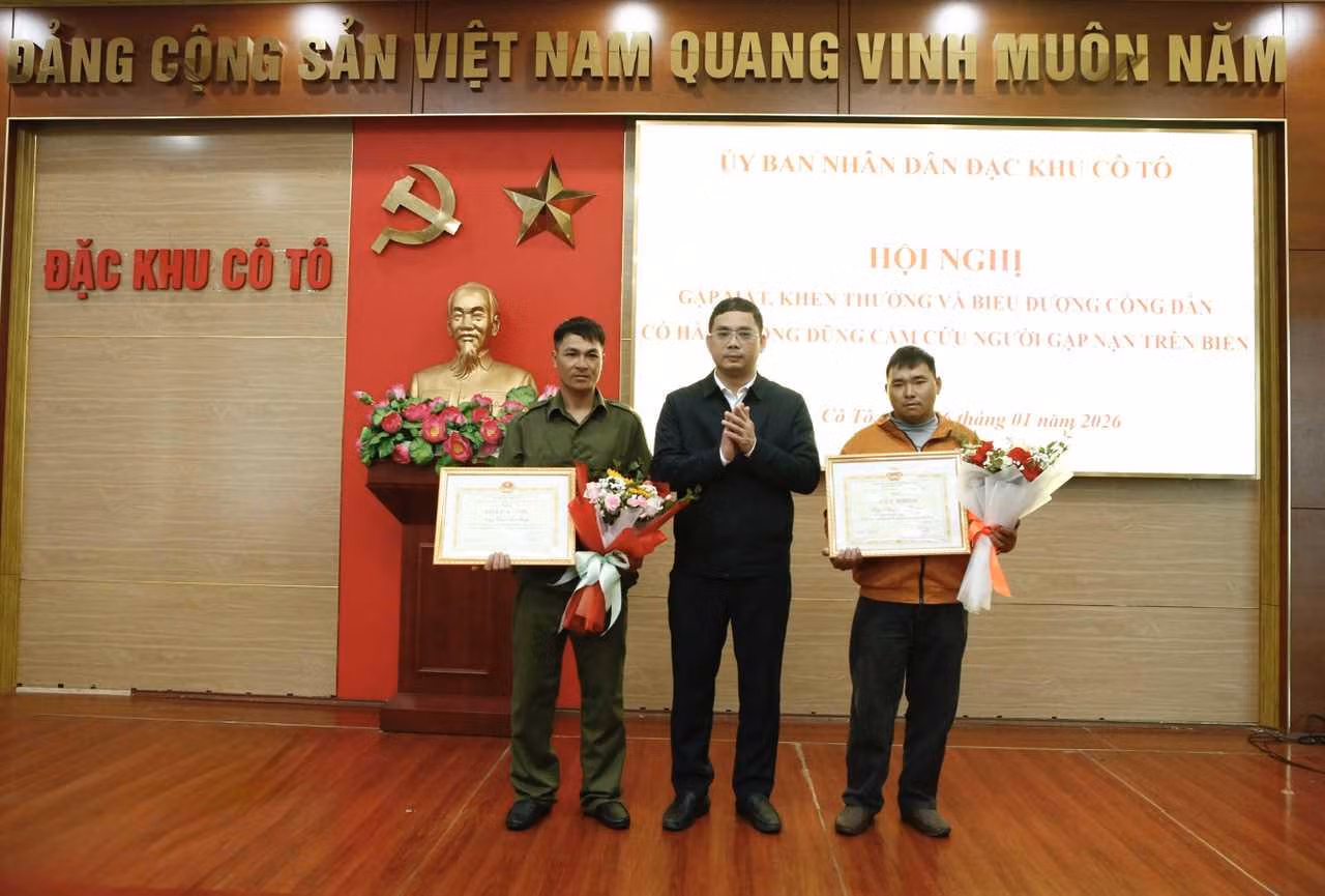 Ngày 26/1, UBND đặc khu Cô Tổ (Quảng Ninh) tổ chức biểu dương, khen thưởng anh Thái Văn Ninh (SN 1987) và anh Phạm Văn Thắng (SN 1997, cùng trú tại thôn 1, đặc khu Cô Tô) đã có hành động dũng cảm cứu người gặp nạn trên biển.