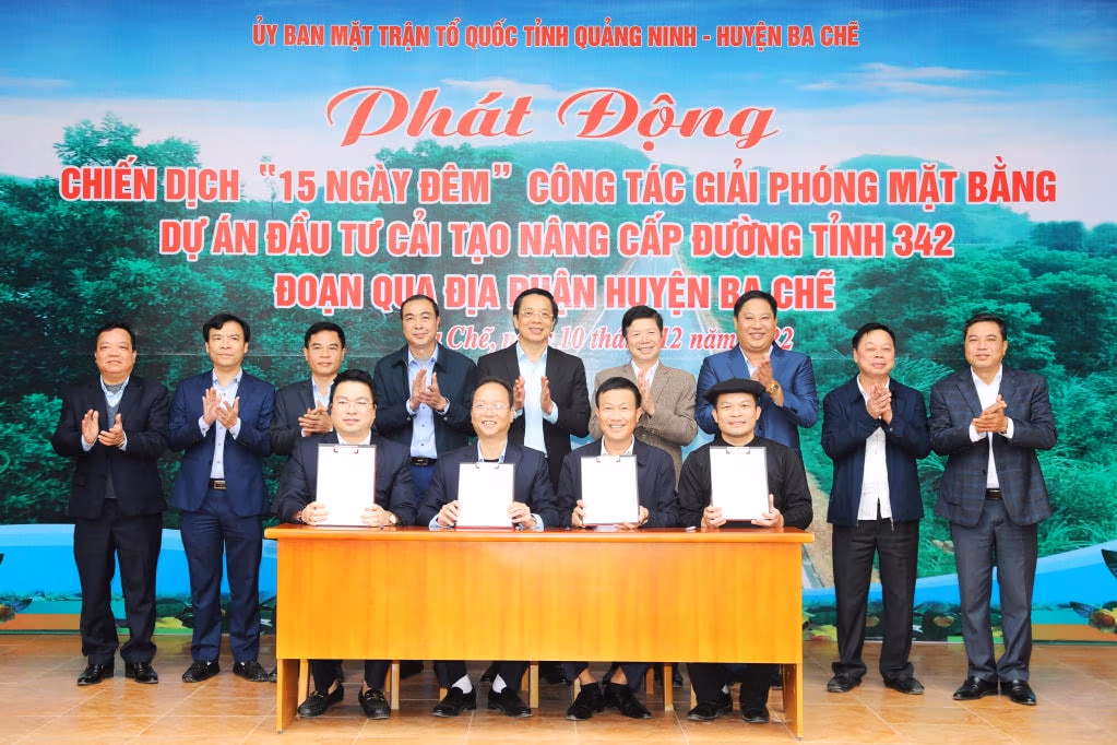 Ngày 10/12, Ủy ban MTTQ Việt Nam tỉnh Quảng Ninh phối hợp với huyện Ba Chẽ phát động “Chiến dịch 15 ngày đêm” hoàn thành GPMB, tạo mặt bằng sạch để triển khai cải tạo, nâng cấp đường tỉnh 342.