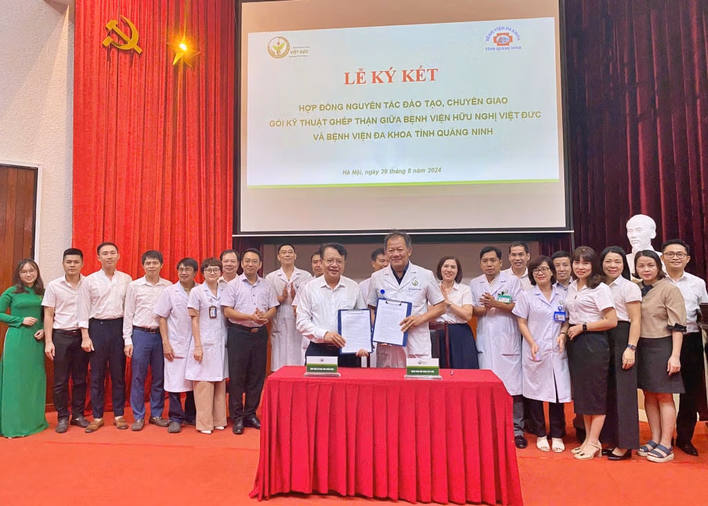 Sau lễ ký kết chuyển giao gói kỹ thuật ghép thận giữa 2 bệnh viện, ngày 30/8, Bệnh viện Hữu nghị Việt Đức đã khai giảng khóa đào tạo chuyển giao kỹ thuật ghép thận cho các y bác sĩ của Bệnh viện Đa khoa tỉnh Quảng Ninh.