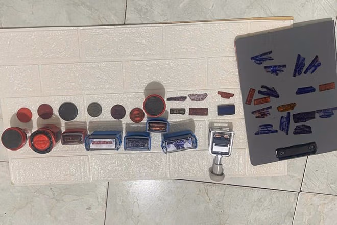 Tiến hành khám xét nơi ở của Hạnh tại TP Hà Nội, Cơ quan Công an đã thu giữ nhiều con dấu giả của các bệnh viện lớn, phôi giấy khám sức khỏe, máy in màu, máy tính, điện thoại, sim rác và nhiều vật chứng quan trọng khác liên quan đến hành vi phạm tội.