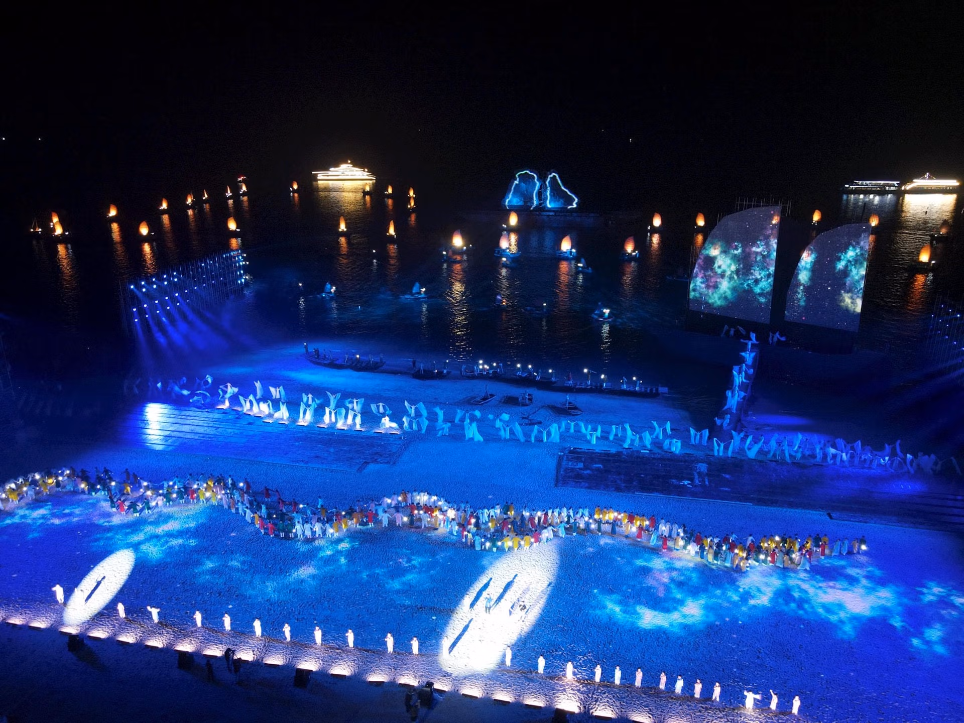 Tại buổi tổng duyệt Carnaval Hạ Long 2024 diễn ra vào tối 26/4, hàng nghìn người dân và du khách lần đầu tiên được chiêm ngưỡng màn trình diễn Drone light trên vịnh Hạ Long.