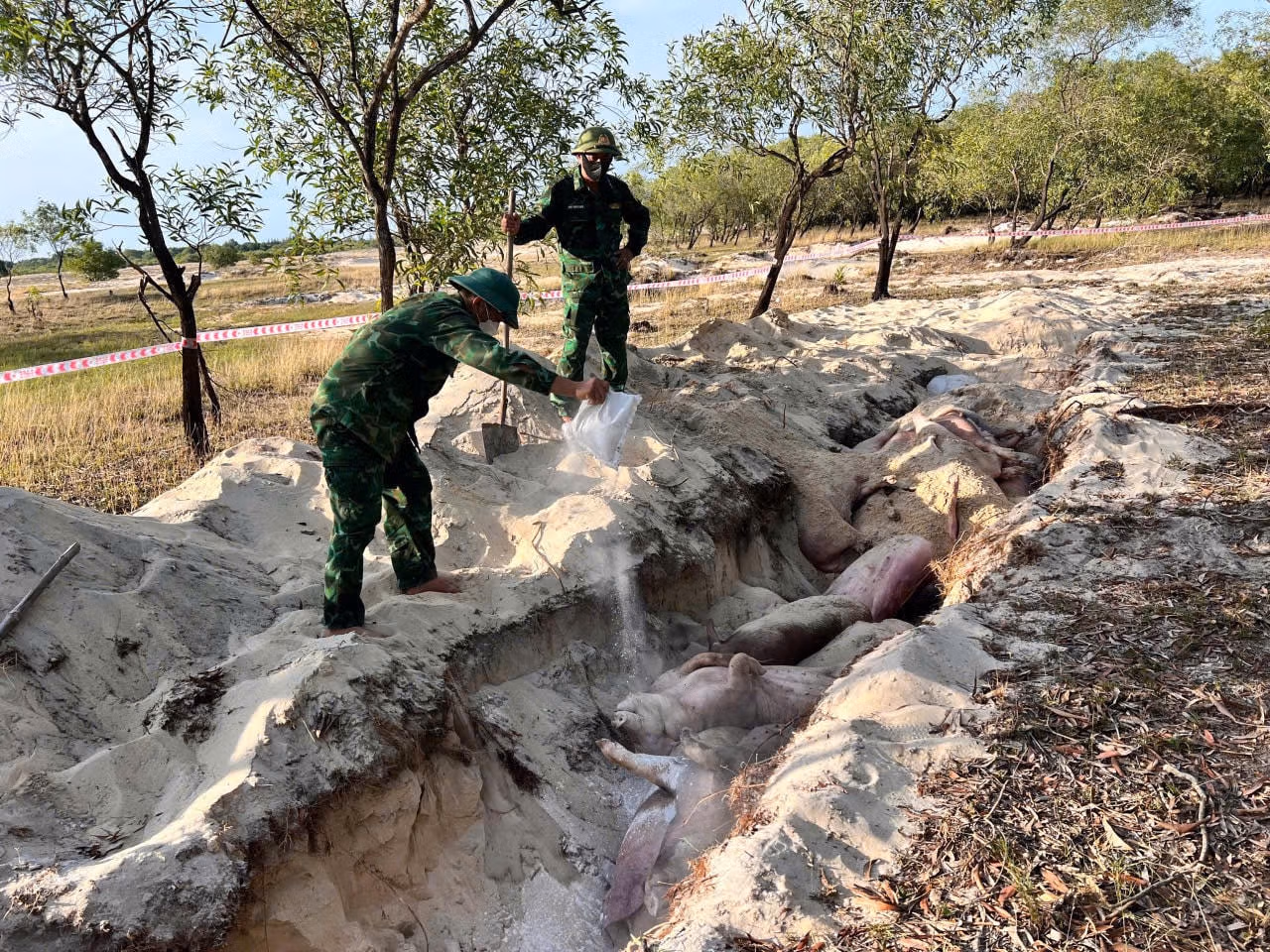Ngay sau đó, đơn vị đã huy động cán bộ chiến sĩ hỗ trợ hộ dân nói trên chôn hủy 30 con lợn, trọng lượng 2,1 tấn.