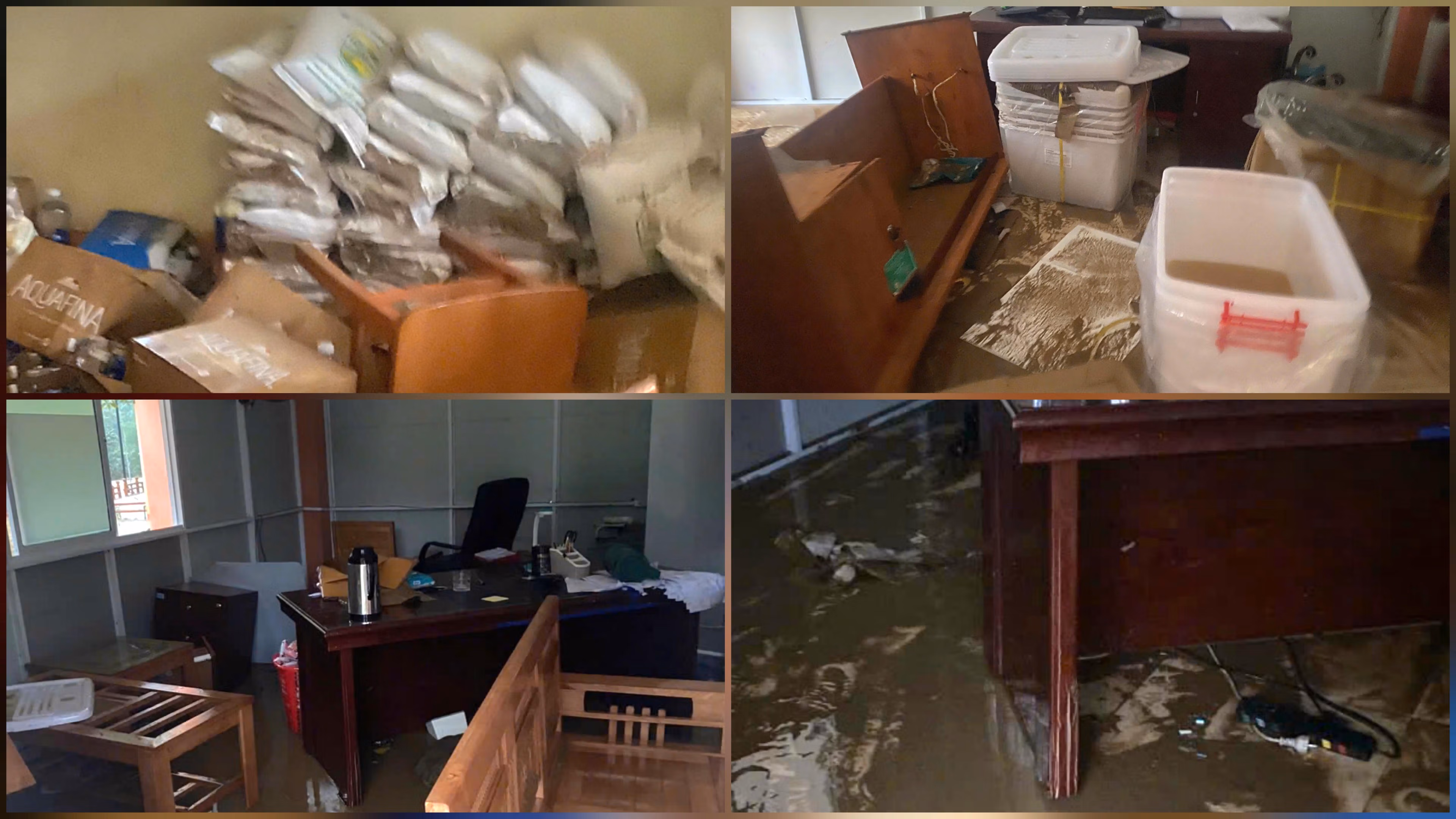 Cụ thể, nước đã ngập 4 phòng làm việc (3 phòng của phòng Kinh tế và 1 phòng Kế toán xã) khiến 5 bộ máy vi tính để bàn, 5 máy in, 2 máy scan, 1 tủ lạnh trữ vắc-xin… bị hư hỏng và nhiều hồ sơ giấy tờ bị ướt, cuốn trôi.