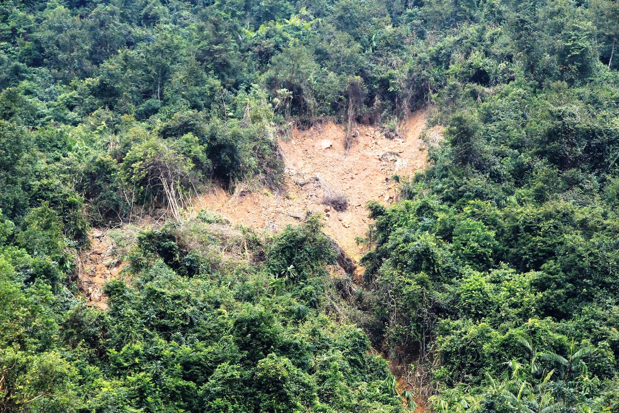 Bà Lê Thị Hường - người dân sống dưới chân núi bàng hoàng nhớ lại: Lúc đó khoảng xế chiều, tôi đang đứng rửa bát ở gian bếp sau nhà thì thấy dòng nước đục ngầu chảy xiết từ trên đỉnh đồi đổ xuống. Cảm giác có điềm chẳng lành, tôi chỉ kịp hô hoán chồng con bỏ chạy thật nhanh ra phía đường lớn. Chỉ trong tích tắc, tiếng động ầm ầm vang lên, đất đá ào xuống như thác đổ.