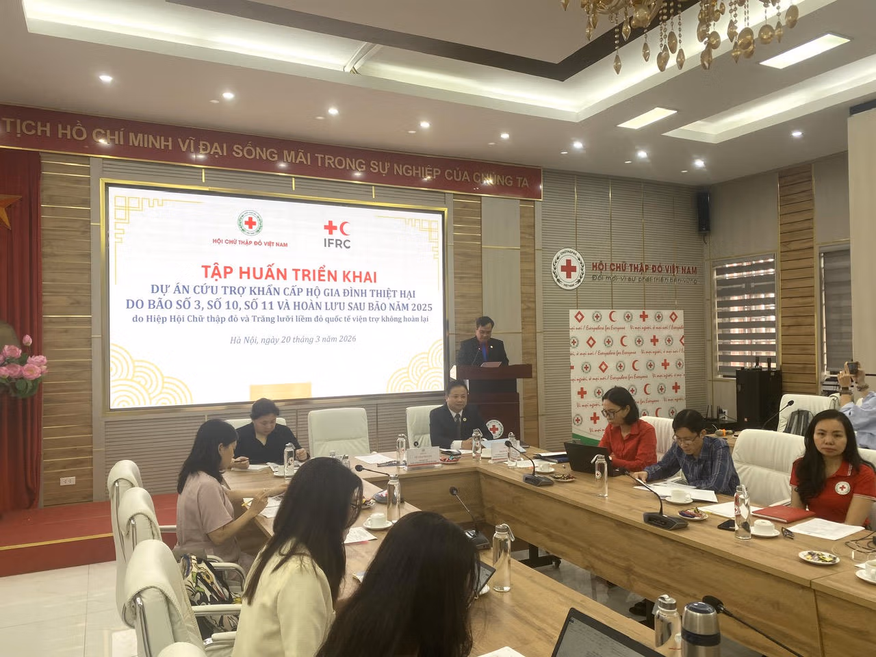 Sáng 20/3, tại Hà Nội, Hội Chữ thập đỏ Việt Nam phối hợp với Hiệp hội Chữ thập đỏ và Trăng lưỡi liềm đỏ Quốc tế tổ chức hội nghị tập huấn triển khai dự án cứu trợ khẩn cấp hộ gia đình thiệt hại do bão số 3, 10, 11 và hoàn lưu sau bão năm 2025.