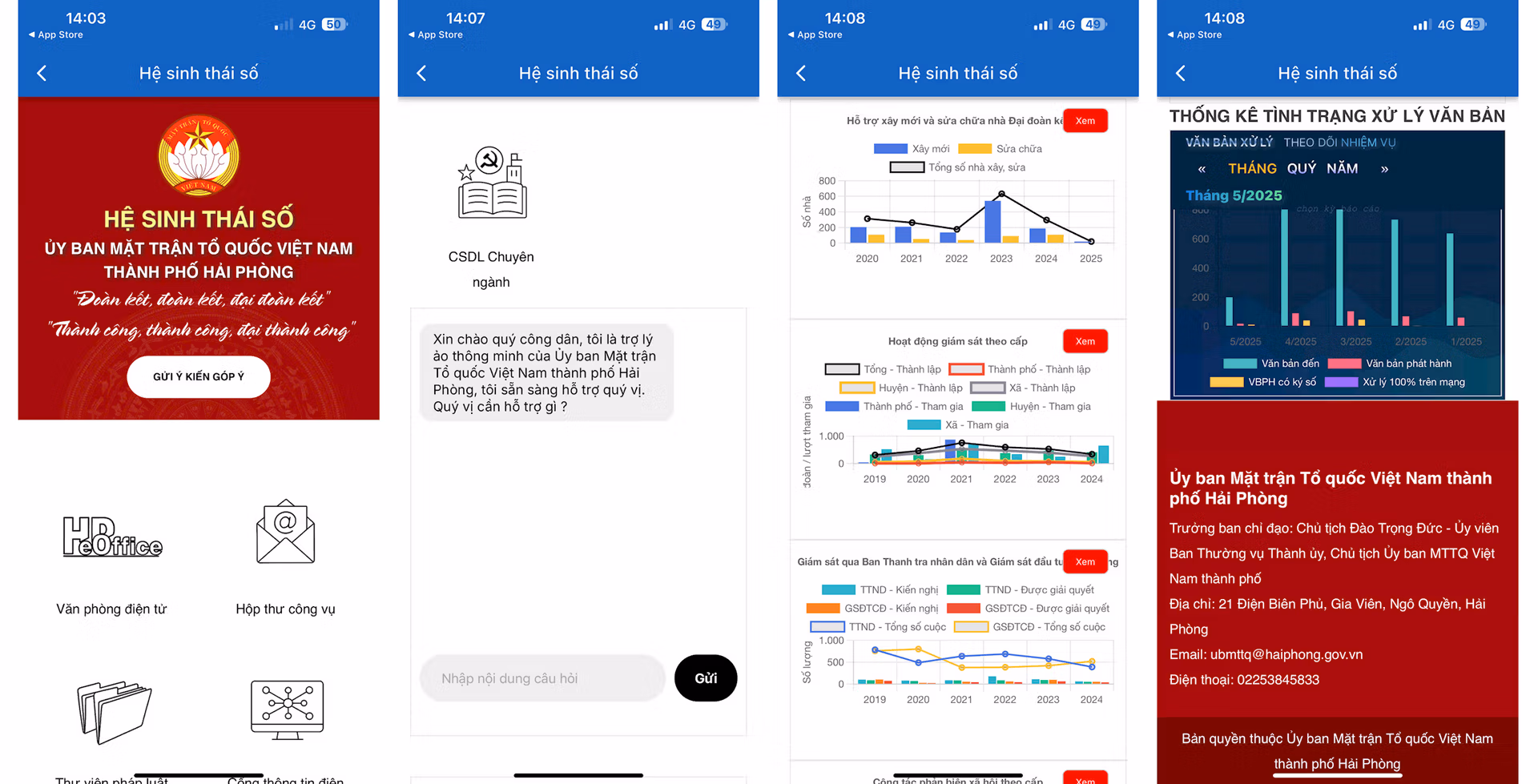 Chiều 16/5, hệ sinh thái số của Ủy ban Mặt trận Tổ quốc Việt Nam TP Hải Phòng được ra mắt thí điểm nhằm triển khai kế hoạch của Bộ Chính trị và Ban Thường vụ Thành uỷ Hải Phòng về đột phá phát triển khoa học, công nghệ, đổi mới sáng tạo và chuyển đổi số quốc gia.