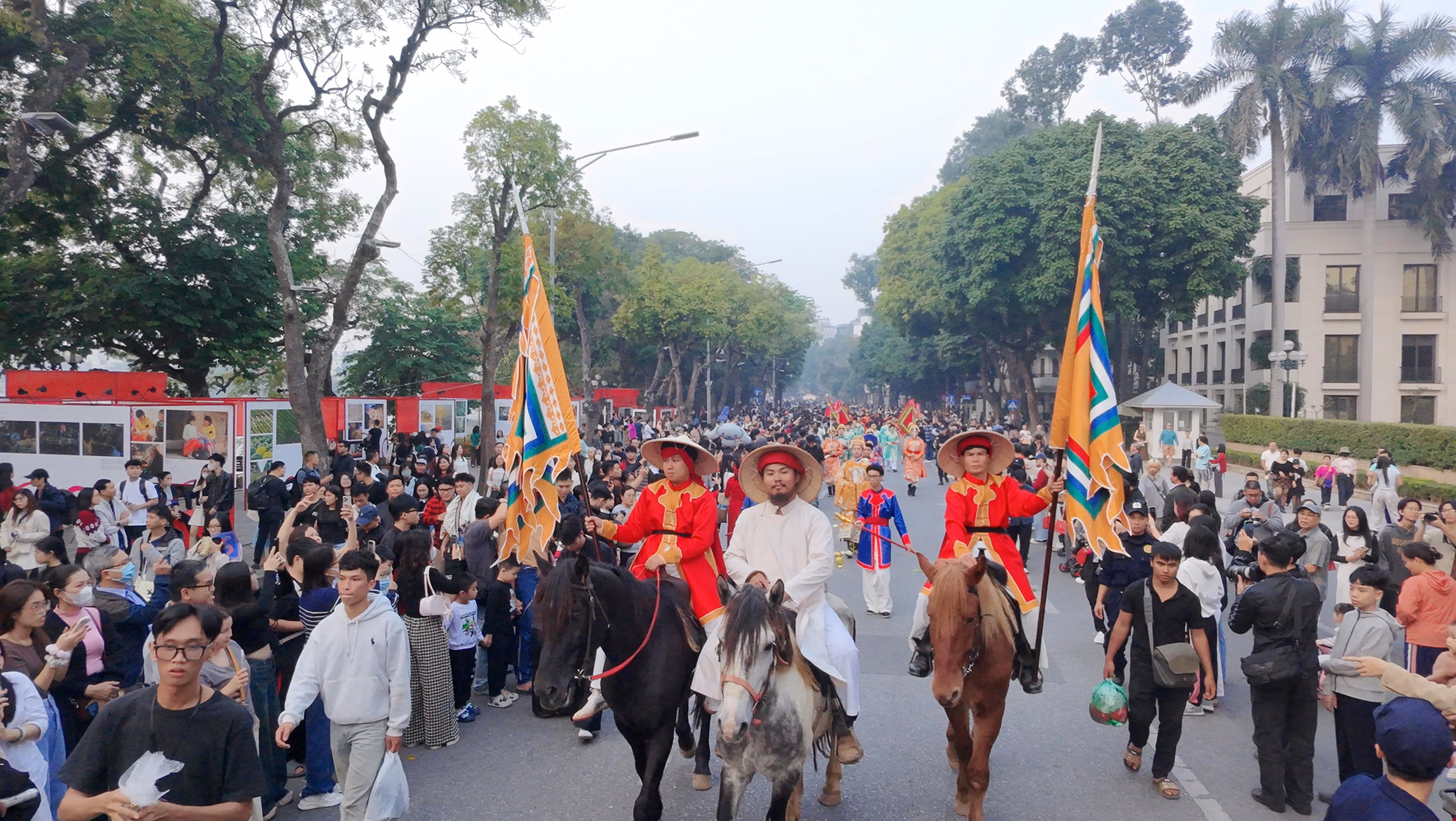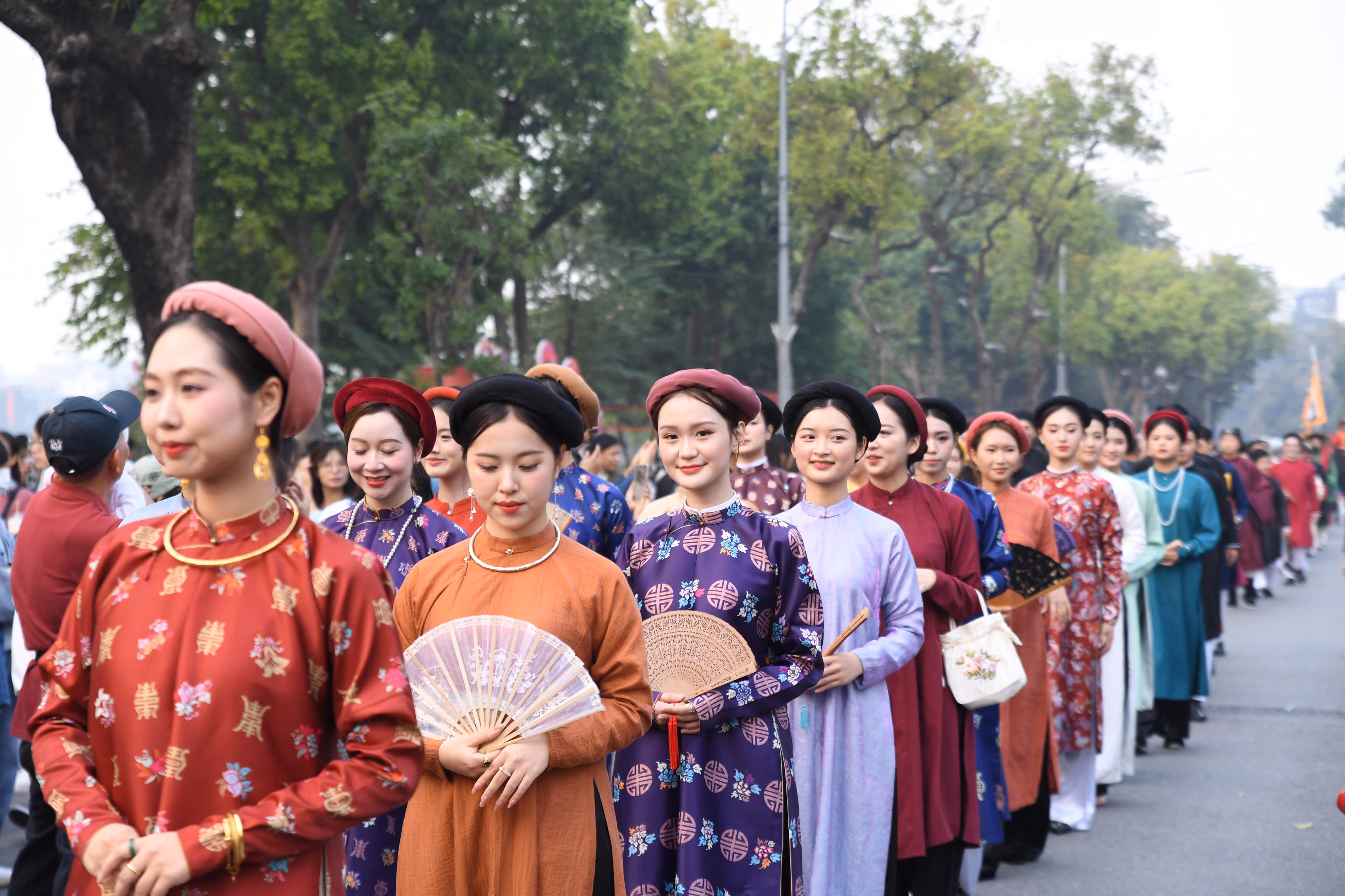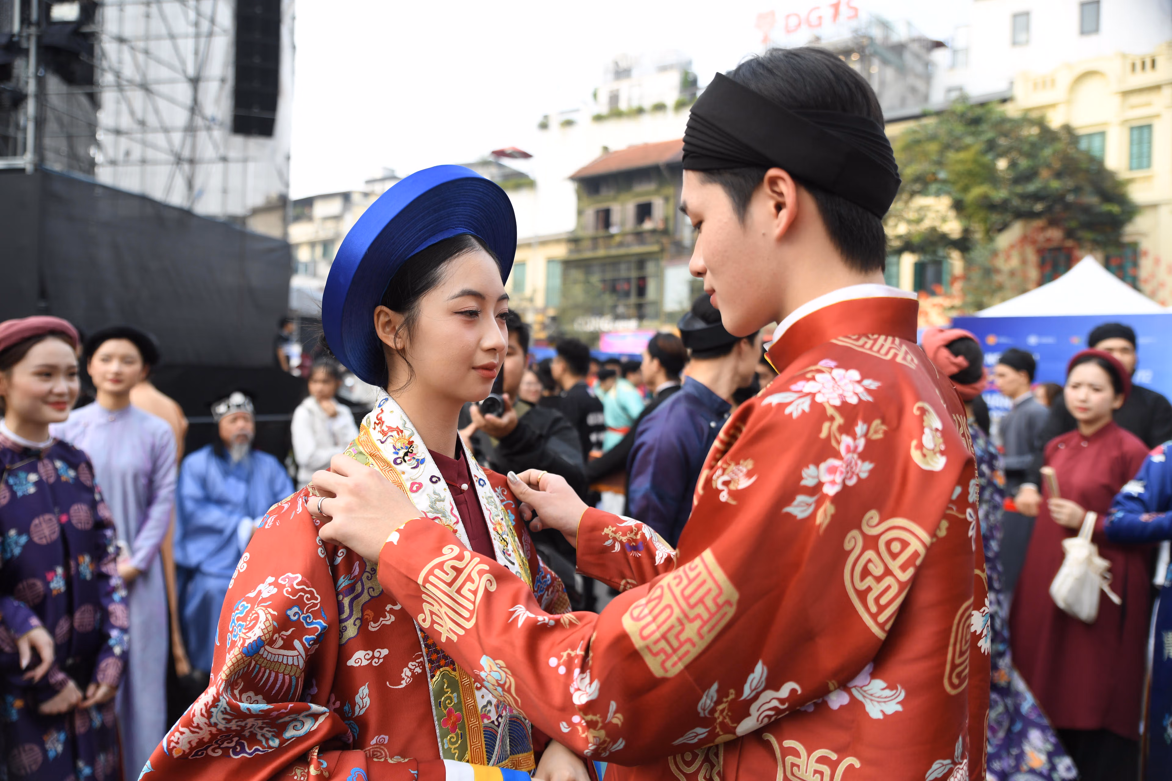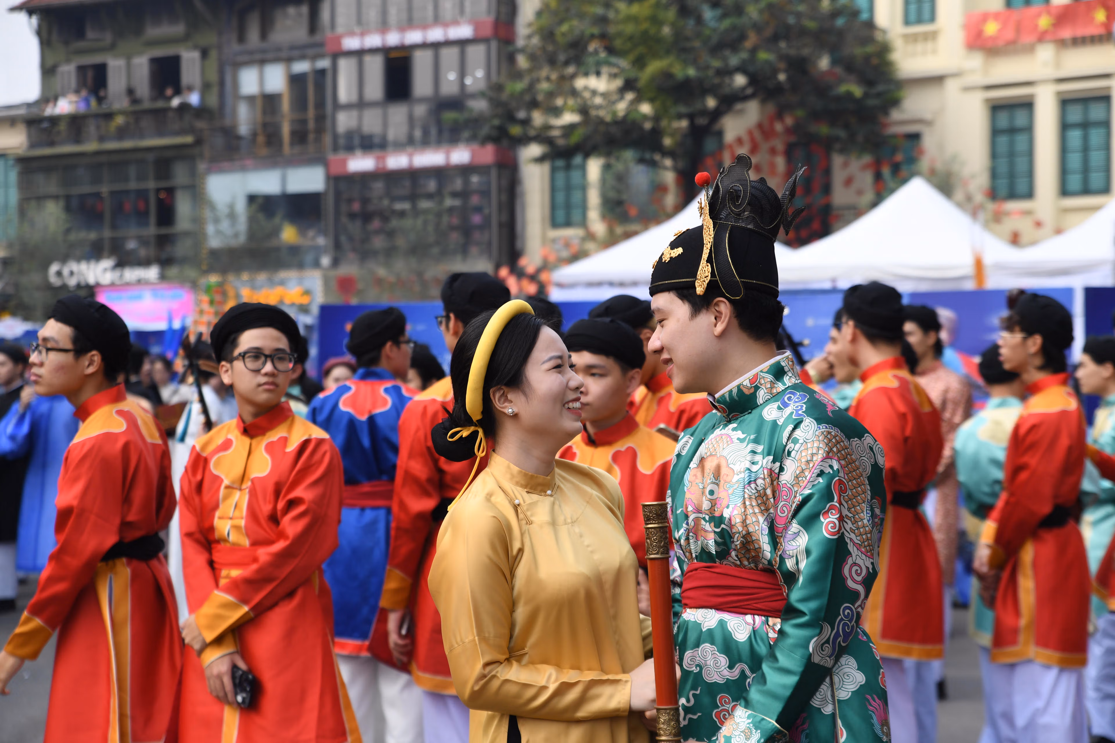 Rộn ràng lễ cưới xưa trên phố đi bộ Hồ Gươm Chủ Nhật 07/12/2025 20:11 (GMT+7) Chiều ngày 7/12, trong khuôn khổ “Ngày hội Việt Nam hạnh phúc - Vietnam Happy Fest 2025”, đã diễn ra hoạt động diễu hành Việt phục "Bách hoa Hỷ sự" tại phố đi bộ Hồ Hoàn Kiếm (Hà Nội). Những điệu nhảy huyền thoại của đám cưới thập niên 90, đã được tái hiện ở phố đi bộ Hoàn Kiếm (Hà Nội). Video: Phạm Sỹ. Khoảng 800 người trong trang phục Việt truyền thống đã cùng hòa mình vào chương trình diễu hành “Bách hoa Hỷ sự”, tạo nên bức tranh sống động tái hiện nghi lễ cưới xưa một cách trang trọng và rực rỡ, gợi nhớ những giá trị đẹp của phong tục Việt. Ảnh: Phạm Sỹ.Các cặp đôi đã tỉ mỉ chuẩn bị cho nghi lễ cưới truyền thống; người chỉnh khăn, người sửa áo, trao nhau những cử chỉ ân cần và ánh mắt hạnh phúc, tạo nên khung cảnh ấm áp và đầy ý nghĩa trước giờ rước lễ. Ảnh: Phạm Sỹ.Đoàn diễu hành khởi bước từ Quảng trường Đông Kinh Nghĩa Thục, xuôi theo Hàng Dầu, rẽ Tràng Tiền, Hàng Khay rồi uyển chuyển vòng quanh hồ Gươm trước khi trở lại sân khấu trung tâm, tạo nên một hành trình rực rỡ giữa lòng phố cổ. Ảnh: Phạm Sỹ.Những chàng trai, cô gái trong bộ trang phục truyền thống trong đoàn rước dâu. Ảnh: Phạm Sỹ.Màn trình diễn lấy cảm hứng từ nghi lễ rước dâu truyền thống của triều Nguyễn với đầy đủ thành phần: gia tộc, quan viên, tân lang - tân nương, đội bưng lễ, đội nhạc… Ảnh: Phạm Sỹ.Chàng trai trong tà áo dài đội lễ. Ảnh: Phạm Sỹ.Các phong tục nghi lễ được tái hiện trang trọng và chỉn chu. Ảnh: Phạm Sỹ.Việc đưa cổ phục và nghi lễ truyền thống ra không gian phố đi bộ không chỉ là hành động tôn vinh vẻ đẹp văn hóa Việt, mà còn mở ra cách tiếp cận gần gũi hơn, để cộng đồng – đặc biệt là người trẻ – có thể “chạm” vào di sản một cách tự nhiên, sinh động và đầy hứng thú. Ảnh: Phạm Sỹ.Chủ đề đám cưới thập niên 90 cũng là một trong những điểm nhấn đặc biệt trong Lễ hội Việt phục “Bách Hoa Hỷ Sự”, góp phần tái hiện một lát cắt quen thuộc của đời sống Việt Nam xưa với nhiều cảm xúc gợi nhớ. Ảnh: Phạm Sỹ.Những cô gái, chàng trai trong bộ trang phục áo dài thập niên 90. Ảnh: Phạm Sỹ.Những điệu nhảy Zumba, lambada cổ điển trong đám cưới xưa. Ảnh: Phạm Sỹ.Cô dâu, chú rể cũng hoà cùng vào những điệu nhảy, tạo nên một không khí sôi động. Ảnh: Phạm Sỹ.Các cặp đôi hạnh phúc khi tham gia hoạt động đặc biệt này. Ảnh: Phạm Sỹ.Những em bé cũng được bố mẹ đưa đi tham gia diễu hành Việt phục "Bách hoa Hỷ sự". Ảnh: Phạm Sỹ.Hoạt động đặc biệt này đã thu hút sự quan tâm đặc biệt của người dân và du khách. Ảnh: Phạm Sỹ. Phạm Sỹ