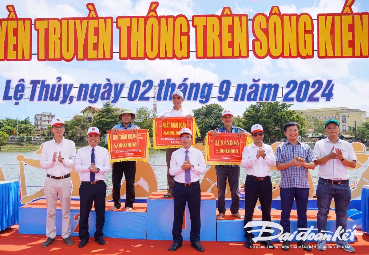 Lễ hội đua, bơi thuyền truyền thống trên sông Kiến Giang là di sản văn hóa phi vật thể quốc gia, thể hiện tinh thần đoàn kết, thượng võ, một nét đẹp văn hóa truyền thống của người dân Lệ Thủy.