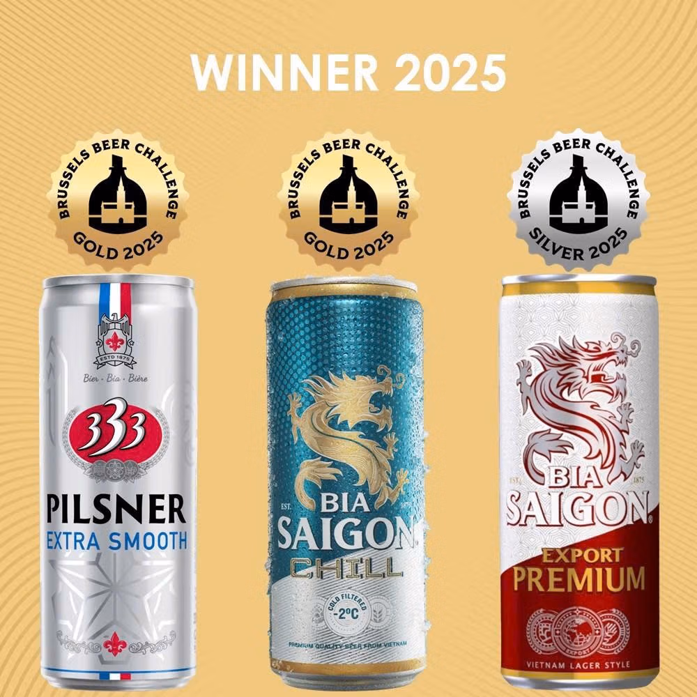 Ngày 18/11, Brussels Beer Challenge 2025 công bố kết quả đánh giá thường niên. Theo đó, Bia 333 Pilsner giành Huy chương Vàng hạng mục Lager nhẹ, trong khi Bia Saigon Chill đạt Huy chương Vàng hạng mục Lager lạnh. Ở cùng hạng mục, Bia Saigon Export Premium nhận Huy chương Bạc.