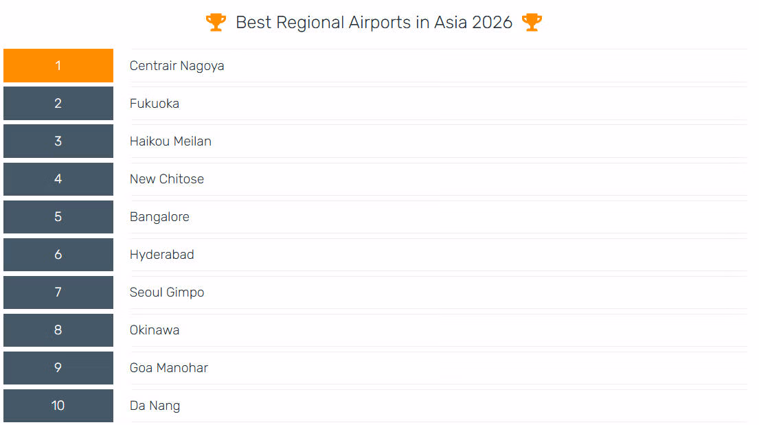 Ngày 19/3, Cảng hàng không quốc tế Đà Nẵng cho biết Tổ chức hàng không quốc tế Skytrax vừa công bố kết quả xếp hạng các sân bay thế giới năm 2026.