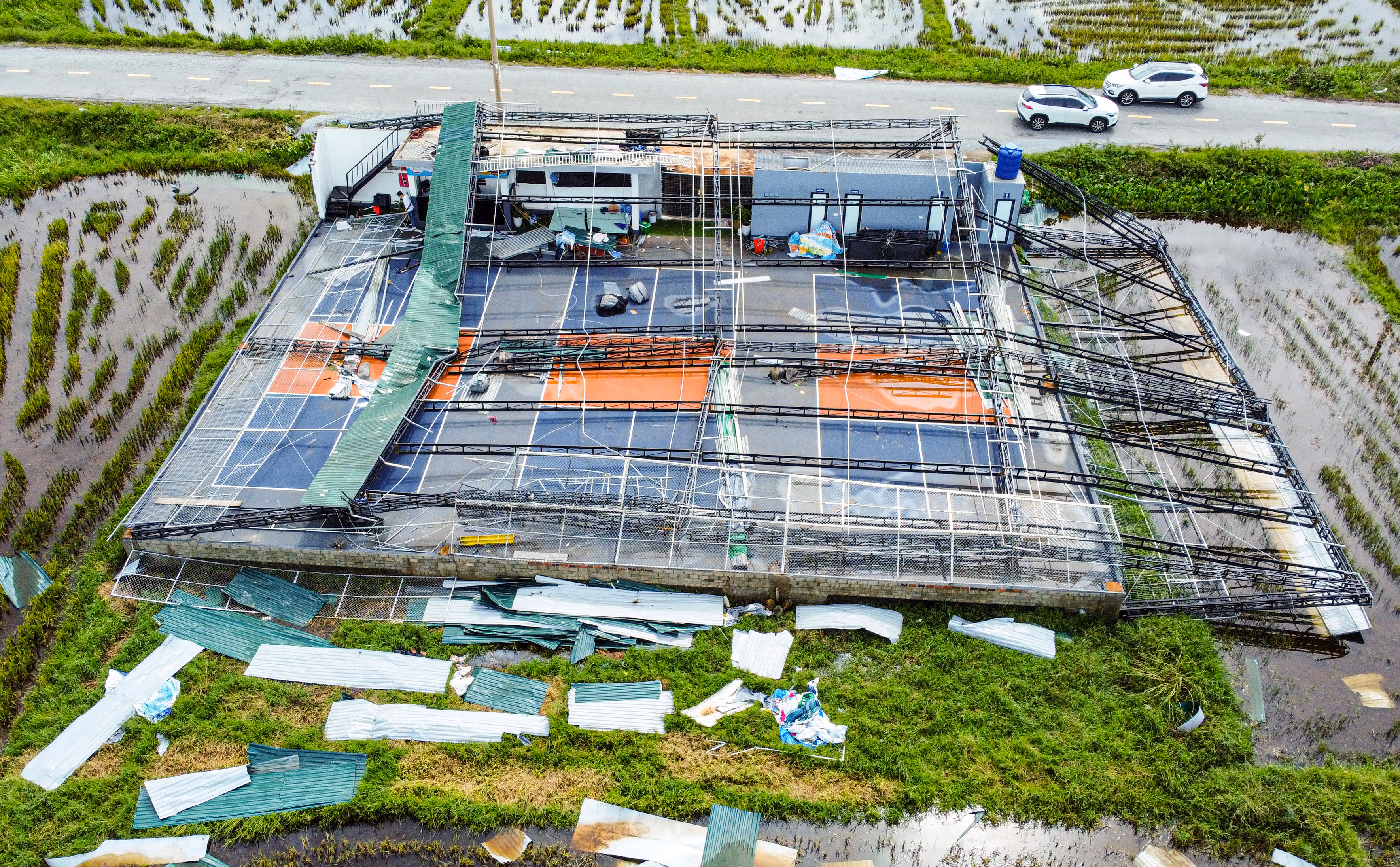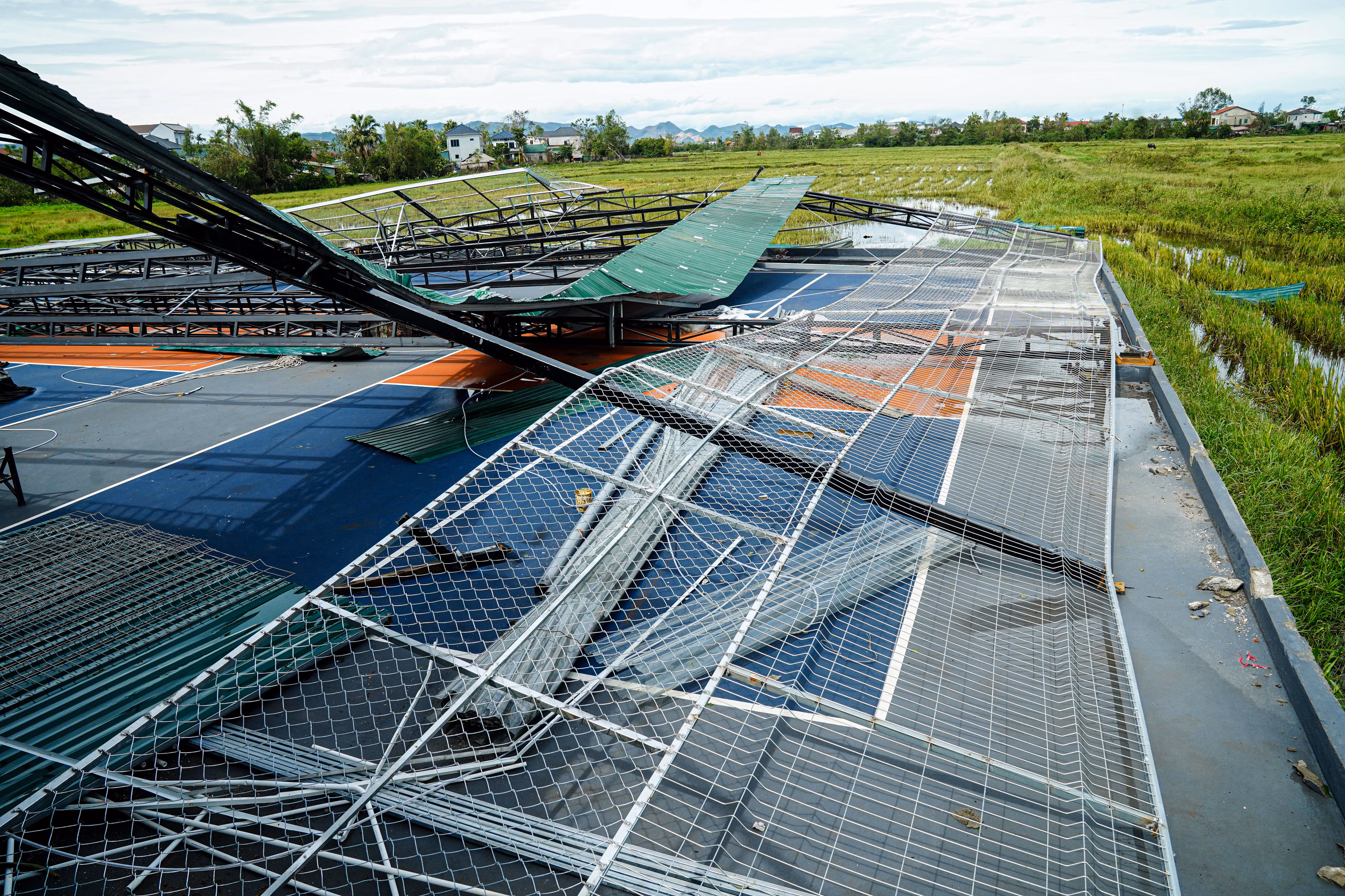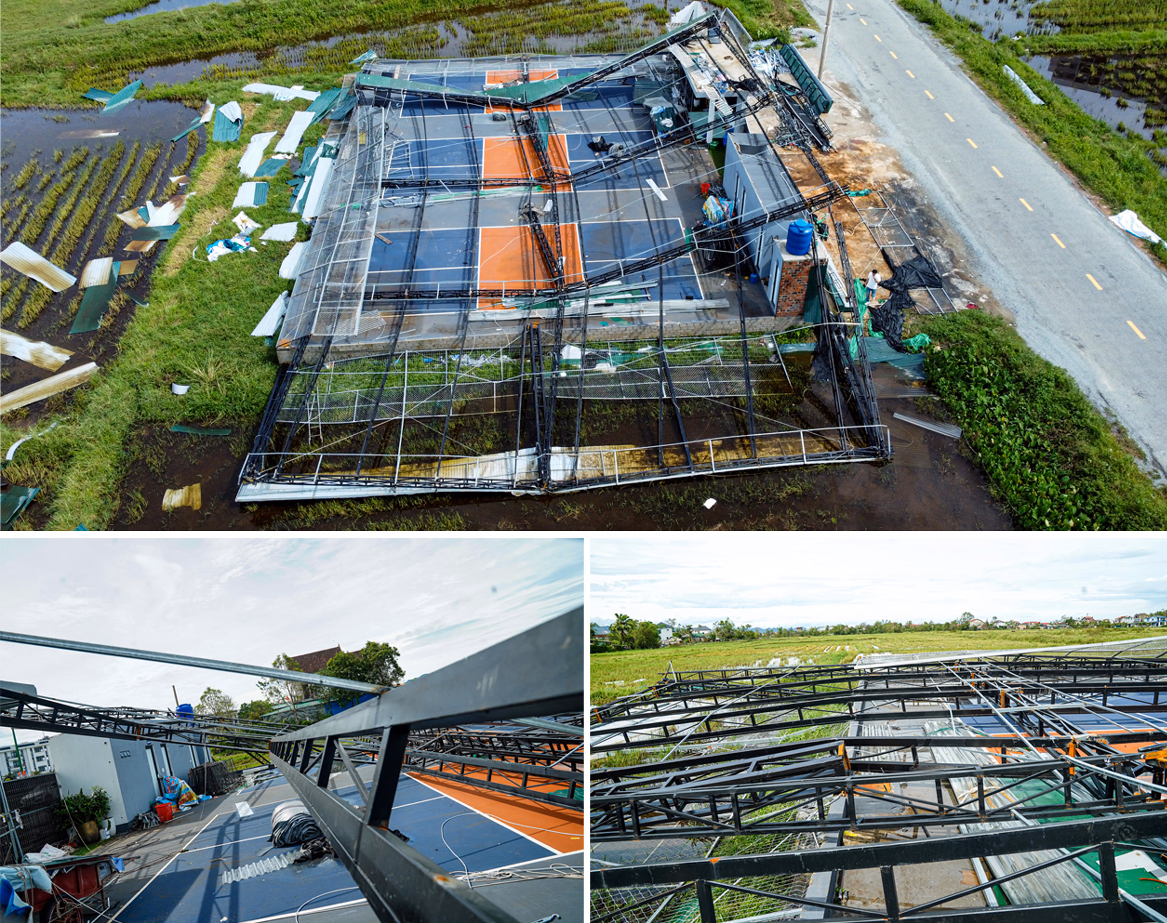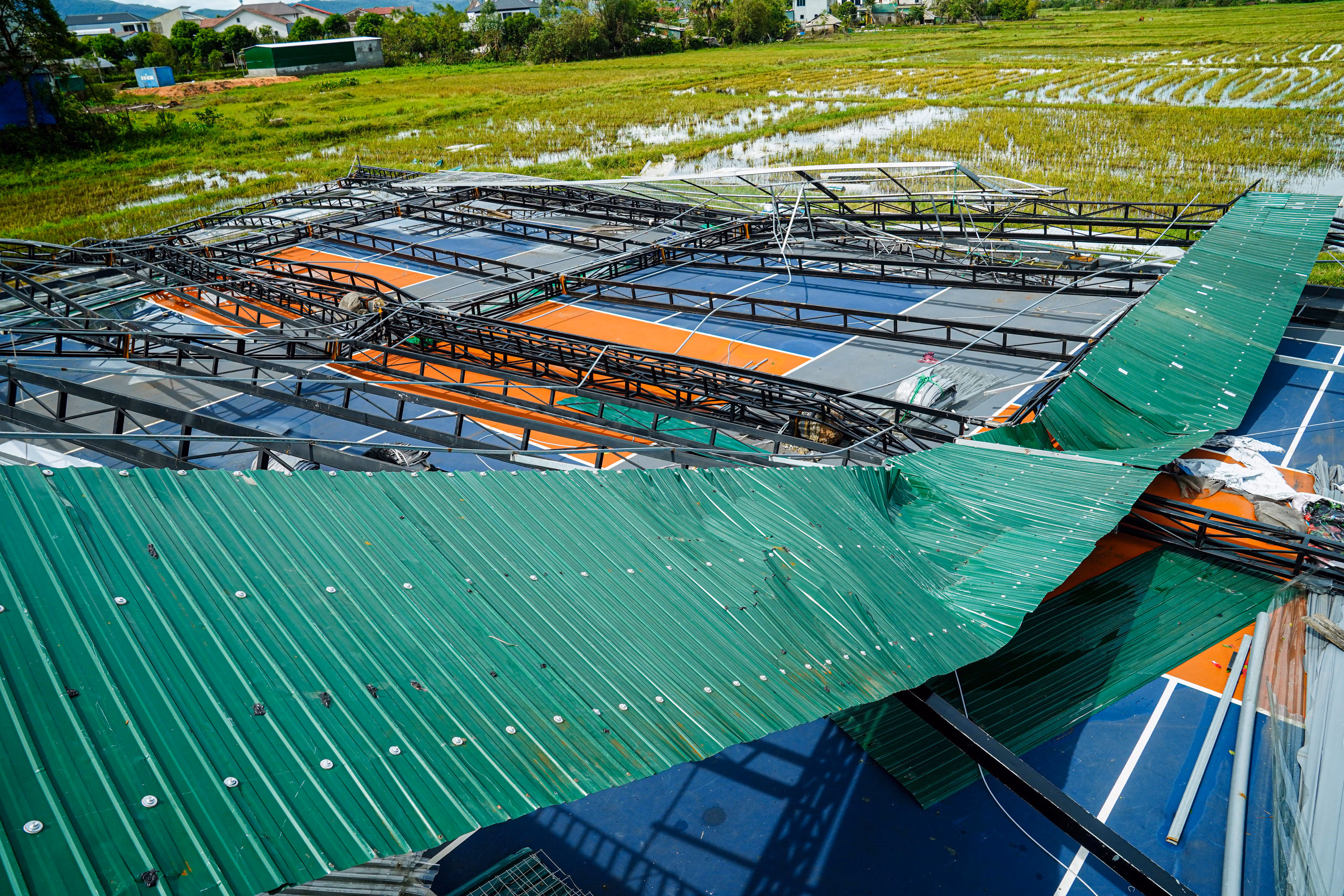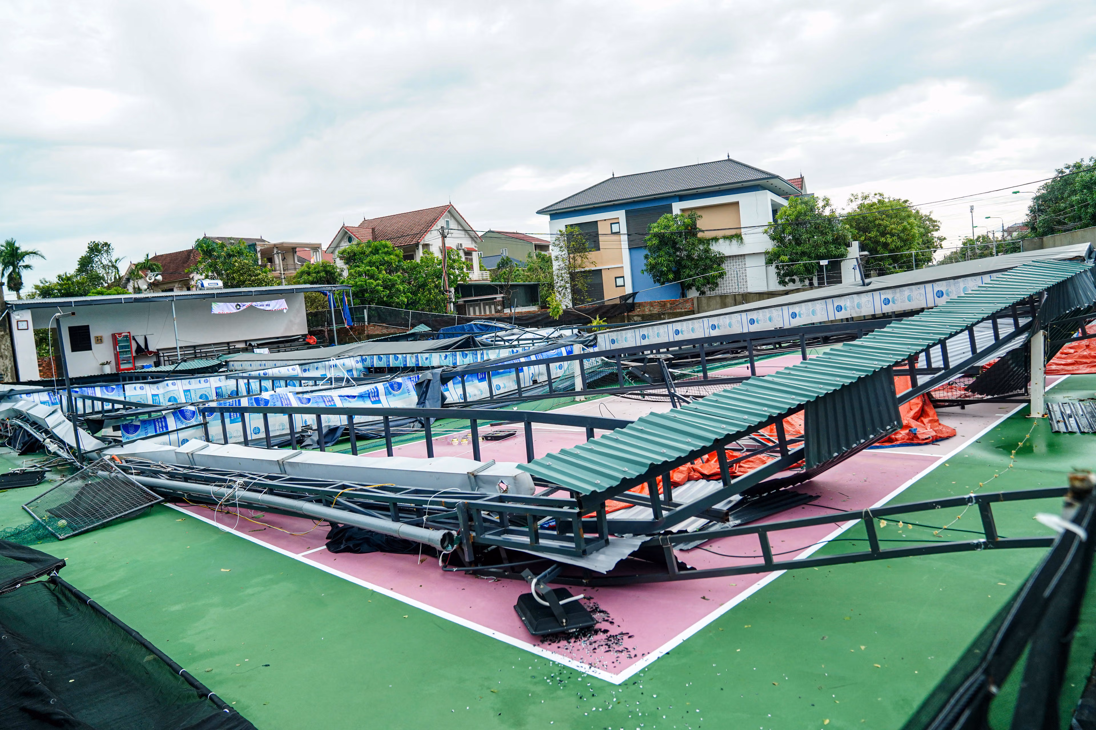 Sau khi bão số 10 quét qua địa bàn Hà Tĩnh, hàng loạt công trình thể thao bị tàn phá, trong đó nhiều sân Pickleball hư hỏng nặng. Đáng chú ý, nhiều sân vừa khắc phục xong sau bão số 5, chưa kịp đưa vào hoạt động trở lại thì lại tiếp tục bị cơn bão mới đánh sập.