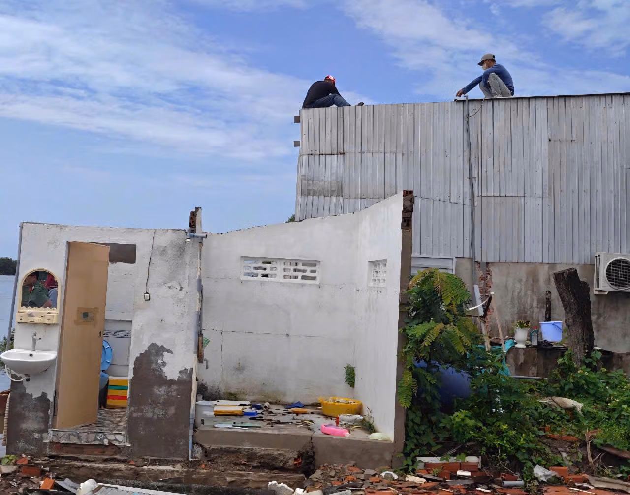 Vụ sạt lở bờ sông làm 5 căn nhà ở phường Giá Rai, tỉnh Cà Mau đổ sụp xuống lòng sông khiến nhiều người không kịp trở tay.