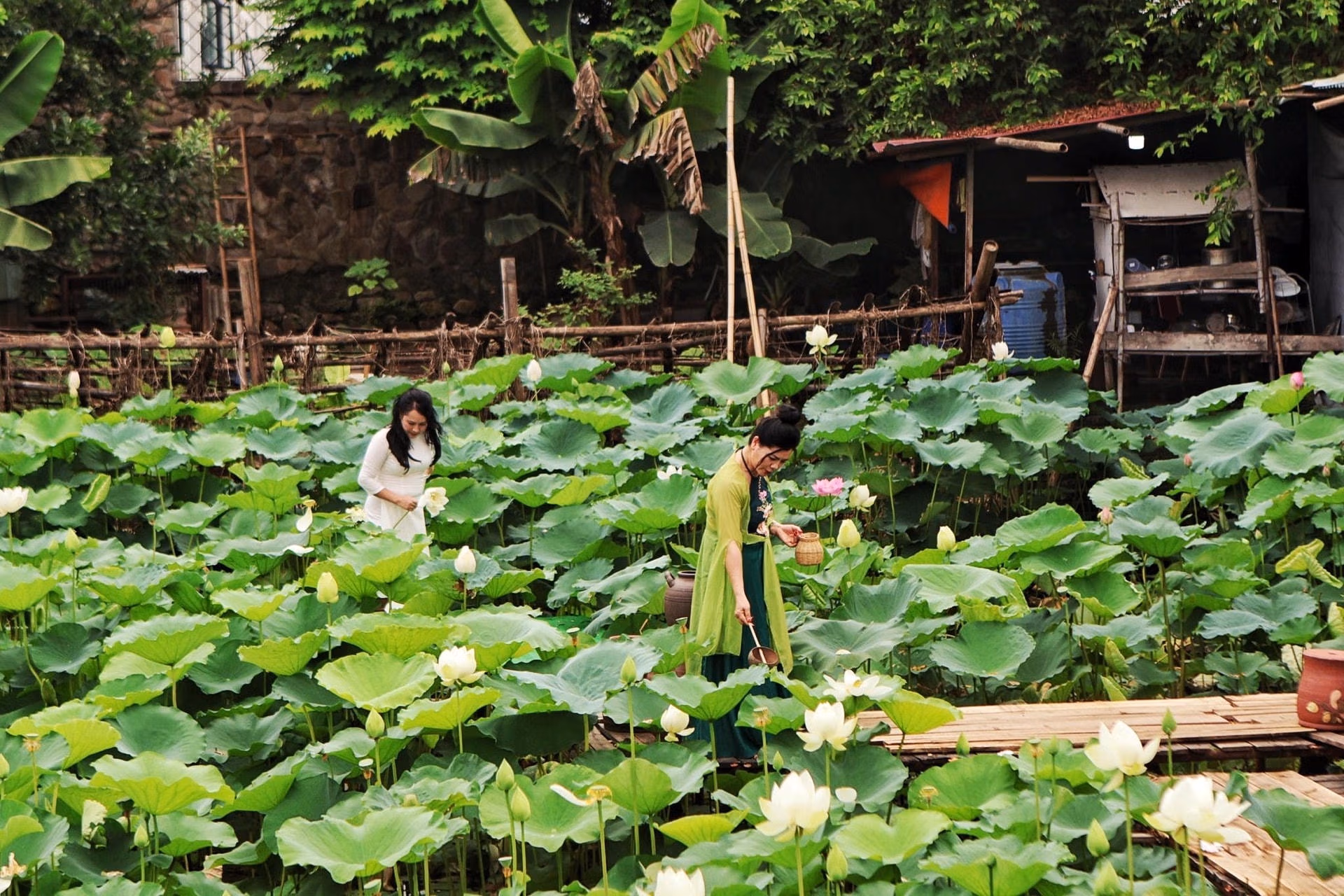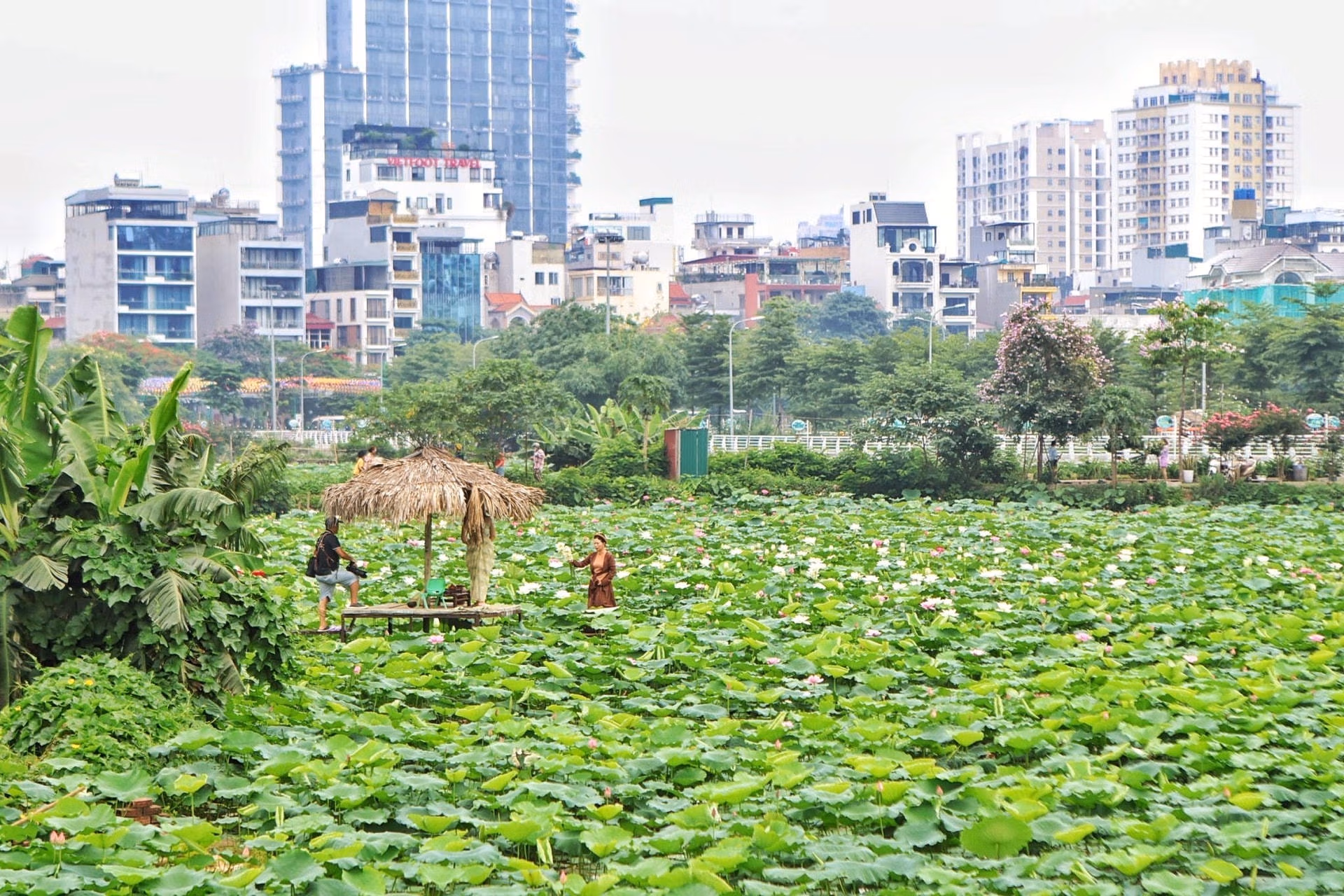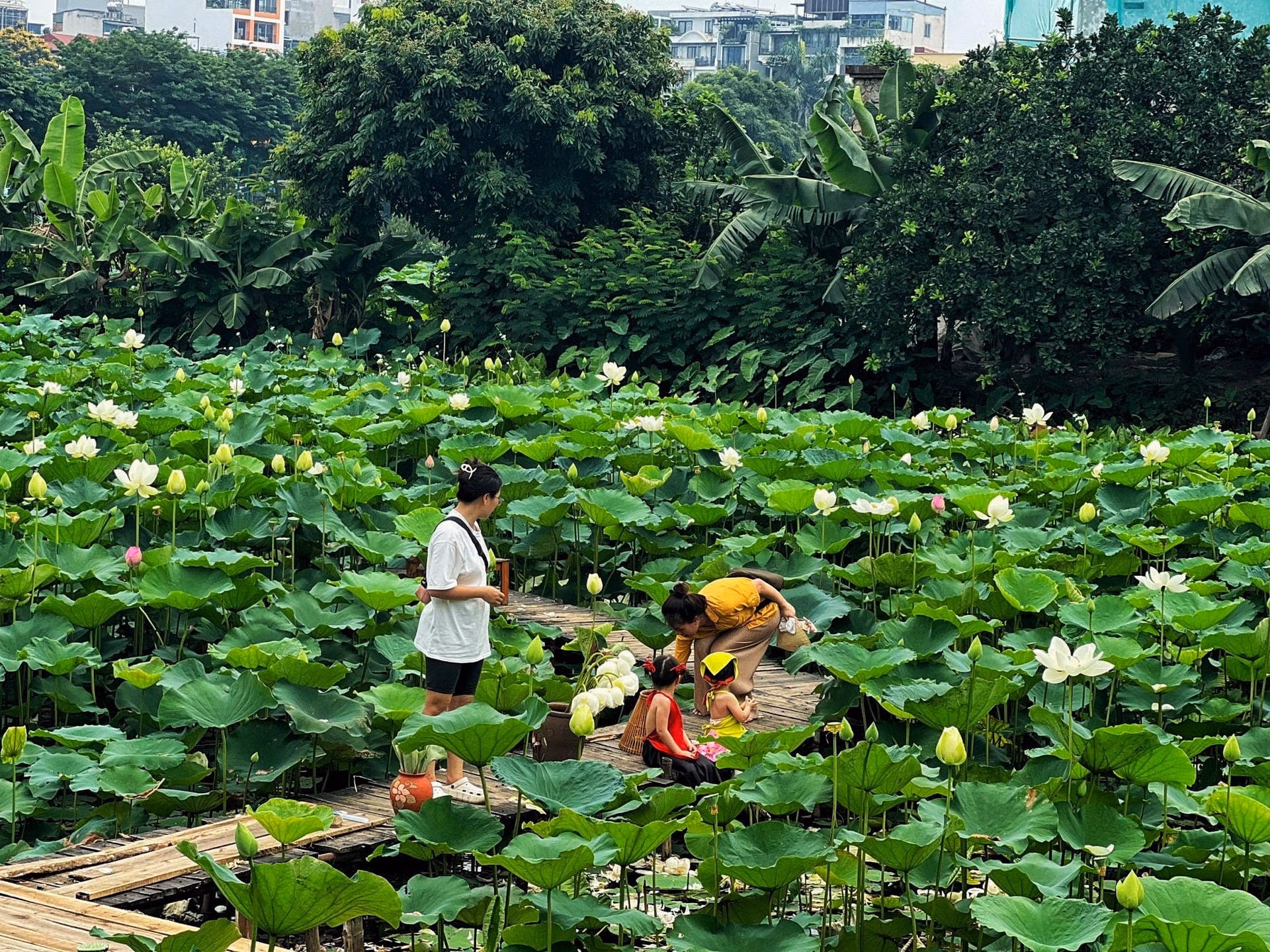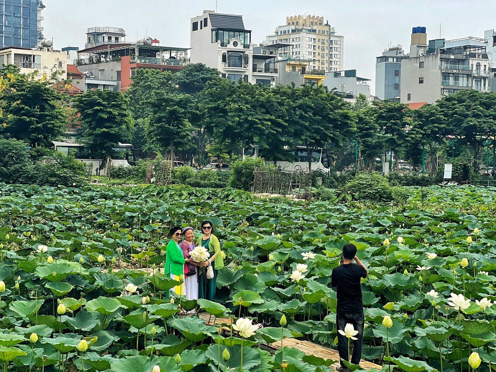 Sen Tây Hồ nở rộ, khách nườm nượp tới 'check-in' Thứ Ba 28/05/2024 14:10 (GMT+7) Khoảng tháng 5, tháng 6 hàng năm, sen Tây Hồ bắt đầu vào mùa đẹp nhất. Thời điểm này, các đầm sen lớn tại quận Tây Hồ (Hà Nội) luôn tấp nập người đến mua hoa, chụp ảnh. Đầm sen Hồ Tây là một trong những đầm sen lâu đời và lớn nhất tại Hà Nội. Nơi đây có không gian thoáng đãng, đón nắng đẹp và thơ mộng nên thu hút rất nhiều người đến thưởng sen, ngắm sen và chụp ảnh. Thời gian gần đây, những bức ảnh được chụp giữa đầm sen đang thu hút sự chú ý trên mạng xã hội, trở thành "trend" khi hè về.Khoảng 2 tuần trở lại đây, một số đầm sen tại Hà Nội bắt đầu mở cửa để phục vụ khách đến tham quan, chụp ảnh, ngoài ra kết hợp cho thuê trang phục, phụ kiện... Giá vé vào đầm sẽ là 50.000 đồng/lượt khách. Theo một số chủ đầm, do quá trình trồng và chăm sóc sen rất kỳ công, tốn kém nên mô hình kinh doanh chụp ảnh mới được mở rộng.Tại mỗi đầm sen, chủ đầm thường dựng chòi, bên trong treo những bộ trang phục thời xưa như áo dài, áo bà ba, áo yếm... cùng những phụ kiện như gáo dừa, ô, quạt... Các loại trang phục sẽ có giá thuê khác nhau, phụ thuộc vào kiểu dáng, chất liệu..., dao động từ 70.000 - 150.000 đồng/bộ.Vào những ngày này, mỗi chủ đầm có thể thu về hàng triệu đồng/ngày từ việc thu vé vào cổng, cho thuê trang phục, dịch vụ trông xe, bán nước giải khát, bán hoa sen… cho khách đến tham quan, chụp ảnh. Theo ông Quốc Trọng - một chủ đầm sen ở khu vực Hồ Tây cho biết: “Năm nay sen nở đẹp hơn mọi năm, do vậy trung bình mỗi ngày chúng tôi tiếp 20 - 40 lượt khách tham quan và chụp ảnh. Những ngày cuối tuần lượng khách có thể tăng gấp đôi”.Nắm bắt nhu cầu của khách hàng, hầu hết các đầm sen kinh doanh dịch vụ chụp ảnh đều dựng sẵn cầu bằng tre, tạo ra tiểu cảnh đơn giản, đậm nét truyền thống để khách hàng có những bức ảnh đẹp nhất.Tại đầm, mỗi bó sen có giá từ 100.000 - 150.000 đồng/bó 10 bông.Khách đến tham quan, chụp ảnh chủ yếu là các chị em phụ nữ.Các bạn nhỏ cũng được bố mẹ đưa đến đầm sen để chụp ảnh lưu niệm.Cô Thanh Hương (quận Tây Hồ, Hà Nội) chia sẻ: "Tôi chọn chụp ảnh với hoa sen vì đây là loài hoa đẹp nhẹ nhàng, phù hợp với độ tuổi của tôi, hơn nữa hoa sen gắn liền với hình ảnh người con gái Việt Nam truyền thống nên tôi rất thích".Dù thời tiết tại Hà Nội đang nắng nóng, thế nhưng nhiều người vẫn cố gắng để có được những bức ảnh đẹp.Ngoài các chủ đầm, những thợ chụp ảnh tại Hà Nội cũng được "săn đón". Anh Nguyễn Văn Bình - một thợ chụp ảnh lâu năm cho biết: "Mỗi ngày tôi có thể nhận chụp từ 2 - 3 khách, cuối tuần thường sẽ nhiều lịch chụp hơn". Theo tìm hiểu, giá chụp ảnh dao động từ 300.000 đồng - 1 triệu đồng/bộ ảnh tùy vào số lượng ảnh và yêu cầu của khách.Những cánh hoa sen trắng muốt thu hút khách du lịch, tham quan. Ngọc Bích - Nguyễn Hằng