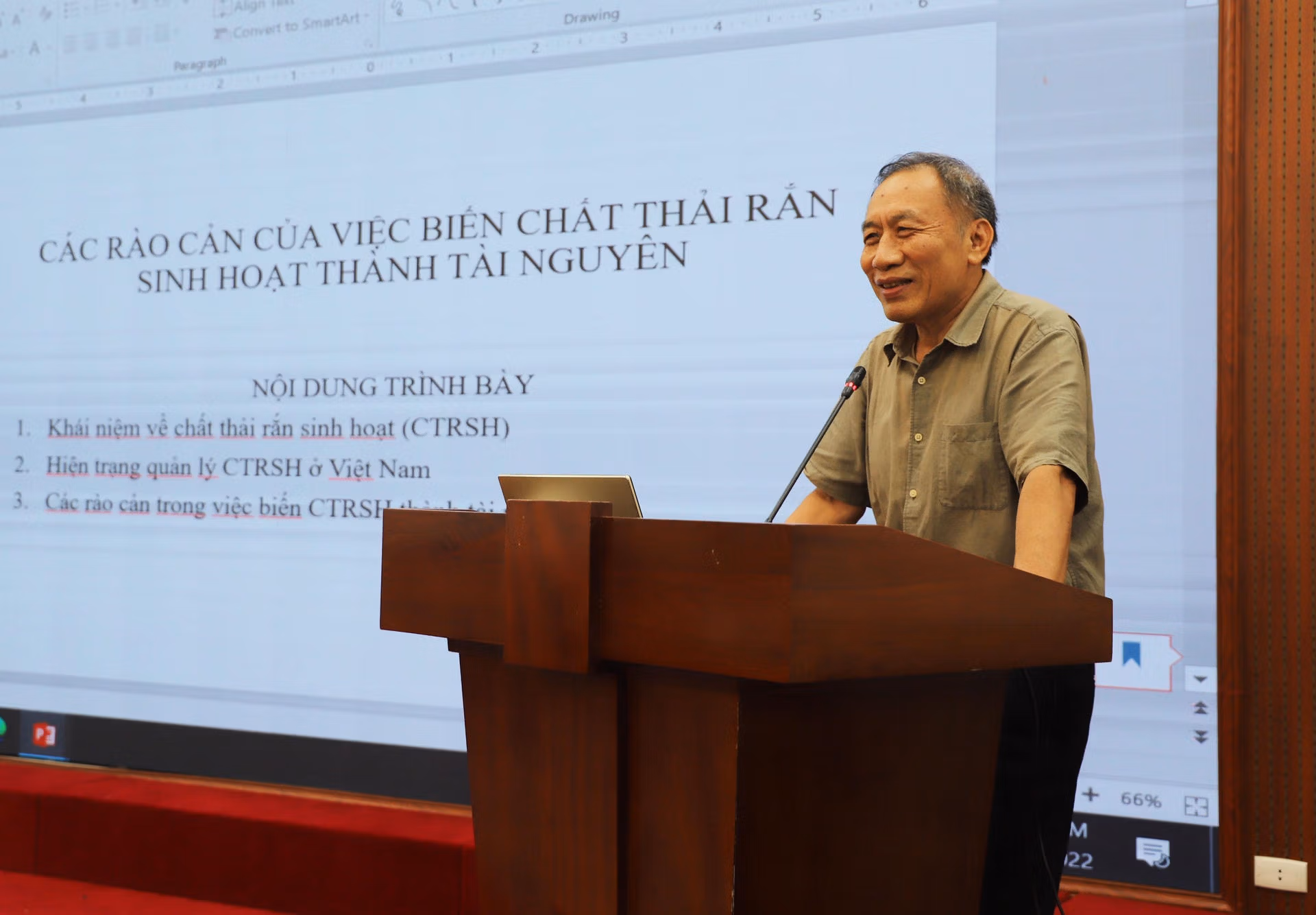 Trình bày chuyên đề “Các rào cản của việc biến chất thải rắn sinh hoạt thành tài nguyên”, PGS.TS Lưu Đức Hải, Chủ tịch Hội Kinh tế Môi trường Việt Nam cho biết, chất thải rắn sinh hoạt là nguồn gây ô nhiễm môi trường ở Việt Nam, nhưng cũng là nguồn tài nguyên có giá trị sau khi được phân loại. Do sự đa dạng về thành phần nhưng không được phân loại nên phương án xử lý đang được triển khai ở Việt Nam là chôn lấp ở bãi rác cho thấy sự không hợp lý, trong khi kinh phí thu gom và xử lý chất thải rắn sinh hoạt hiện nay ở Việt Nam chủ yếu dựa vào ngân sách nhà nước.