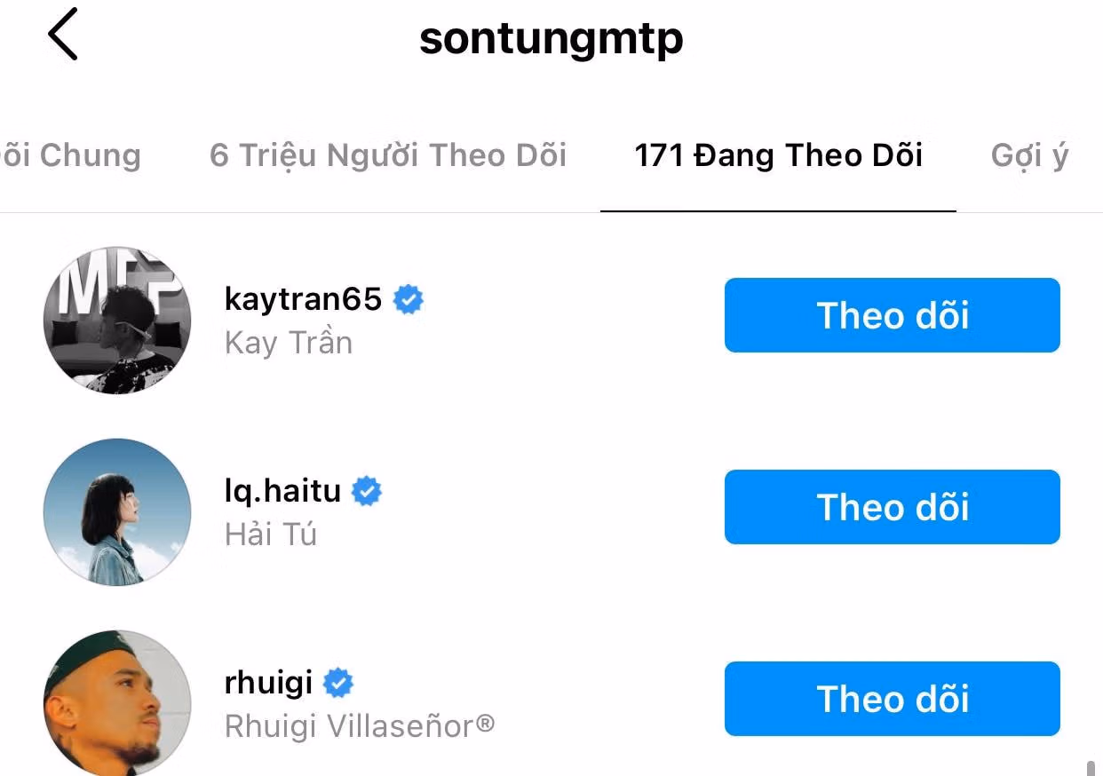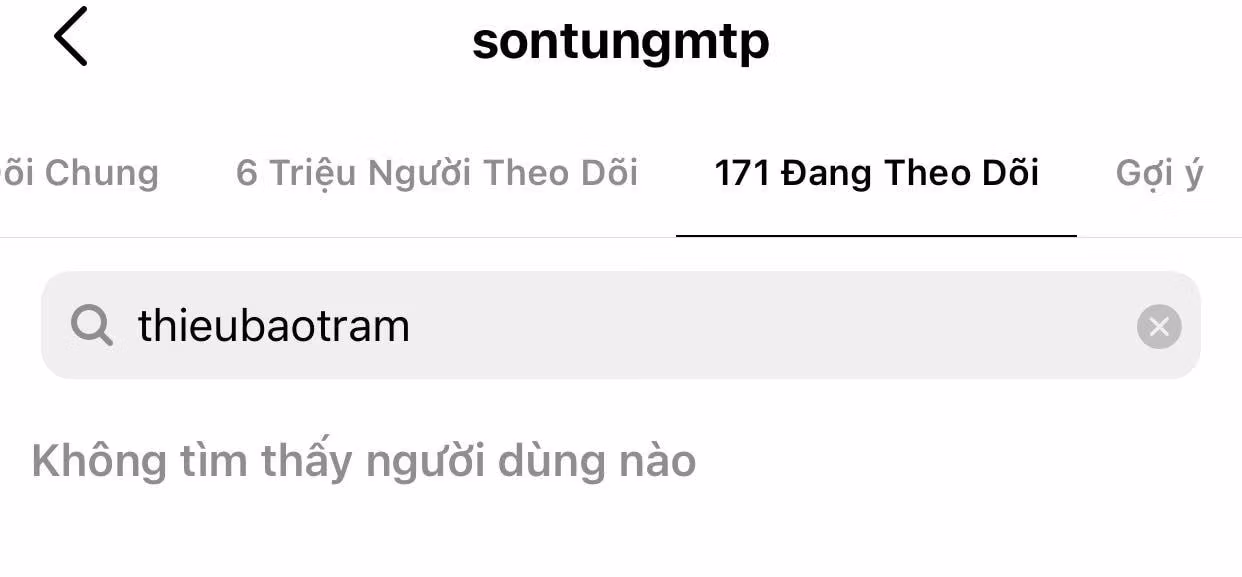 Khi xuất hiện nghi vấn 2 ca sĩ trẻ chia tay, Thiều Bảo Trâm đã chủ động hủy theo dõi Sơn Tùng. Tuy vậy, giọng ca gốc Thái Bình vẫn theo dõi Thiều Bảo Trâm cho đến hôm nay.