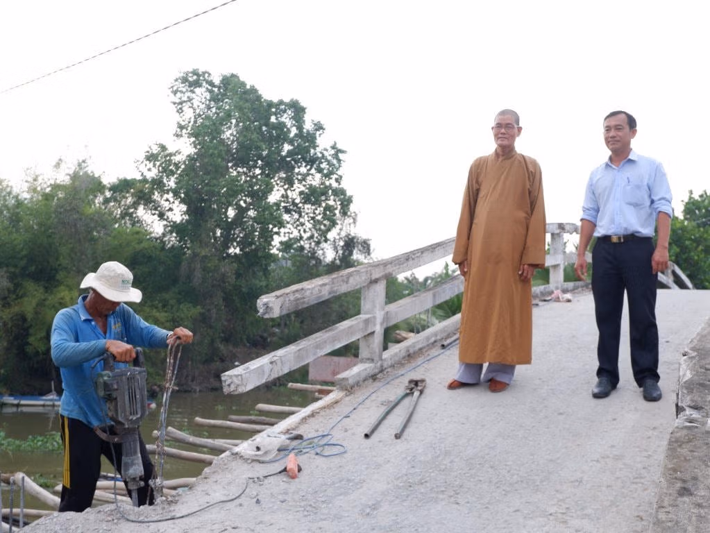 Theo ông Hà Thanh Chì - Phó Chủ tịch UBND huyện Tân Thạnh (Long An) cho biết, từ năm 2020 tới nay Đại đức Thích Lệ Tấn đã vận động phối hợp cùng các đơn vị liên quan xây dựng, sửa chữa khoảng 90 cây cầu ở địa phương với nguồn vốn khoảng 33 tỷ đồng. Trong đó có một cây cầu khá lớn dài 70 mét trị giá 1,6 tỷ đồng, giúp nhiều người dân lưu thông được thuận tiện.