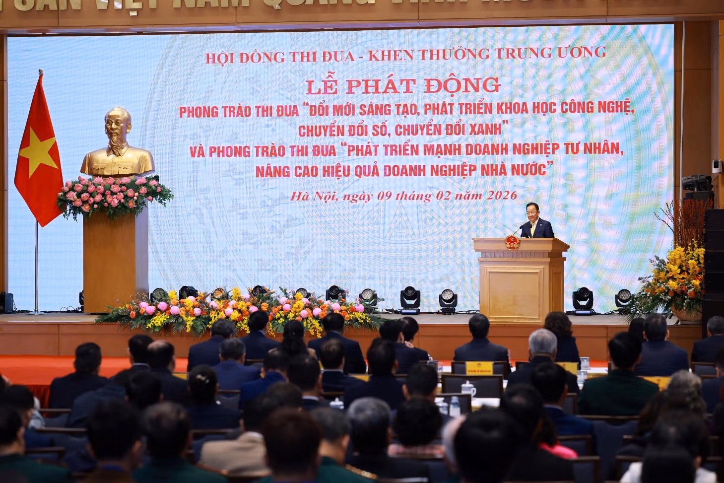Sáng 9/2, tại Trụ sở Chính phủ, Thủ tướng Chính phủ Phạm Minh Chính, Chủ tịch Hội đồng Thi đua - Khen thưởng Trung ương chủ trì Lễ phát động Phong trào thi đua "Đổi mới sáng tạo, phát triển khoa học, công nghệ, chuyển đổi số, chuyển đổi xanh" và Phong trào thi đua "Phát triển mạnh doanh nghiệp tư nhân, nâng cao hiệu quả doanh nghiệp Nhà nước".