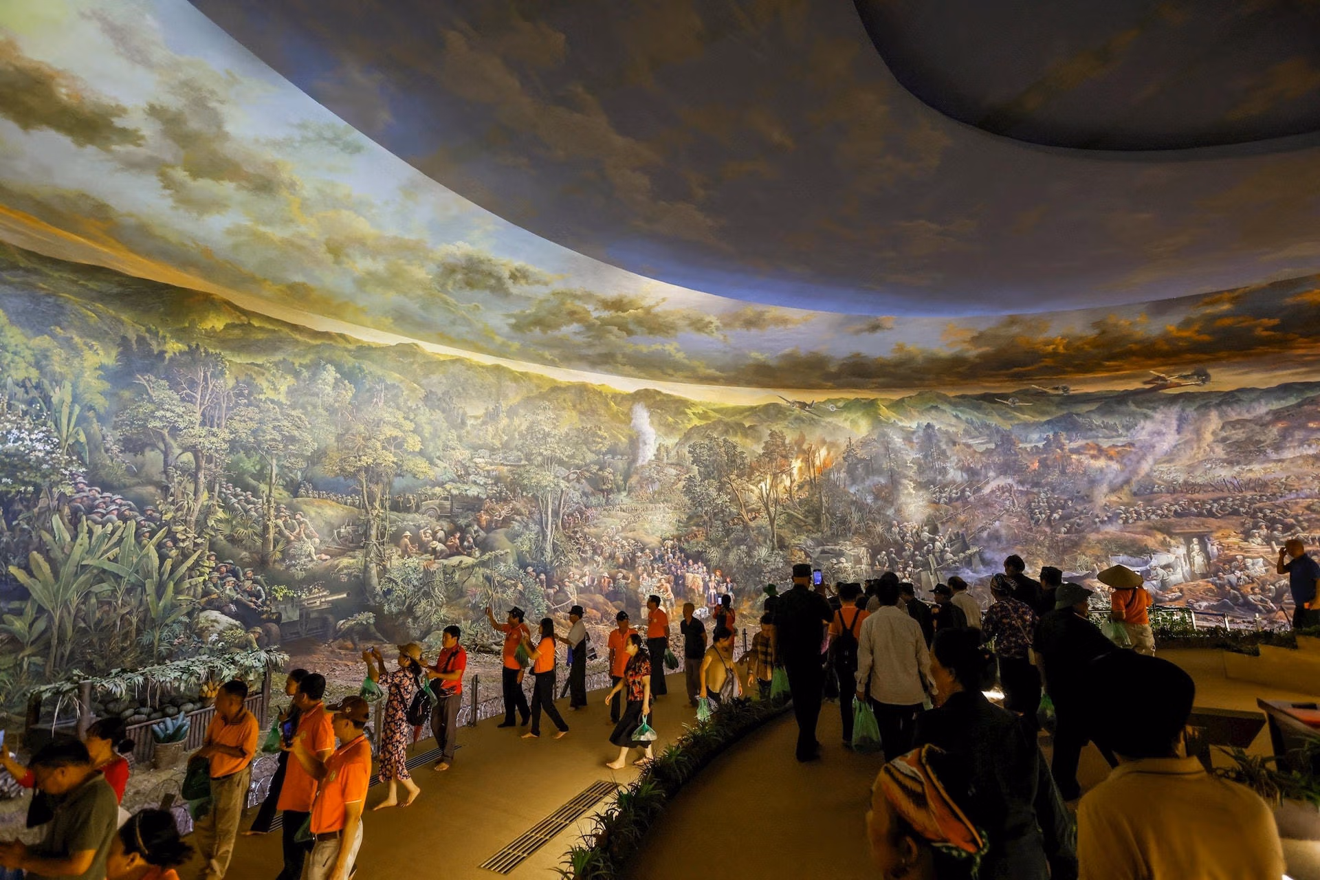 Toàn cảnh Chiến dịch Điện Biên Phủ được tái hiện chân thực, sinh động trên bức tranh panorama trưng bày tại Bảo tàng Chiến thắng Điện Biên Phủ. Du khách tham quan bức tranh như đang hòa mình, chứng kiến những năm tháng chiến đấu cam go mà hào hùng của chiến dịch lịch sử này.