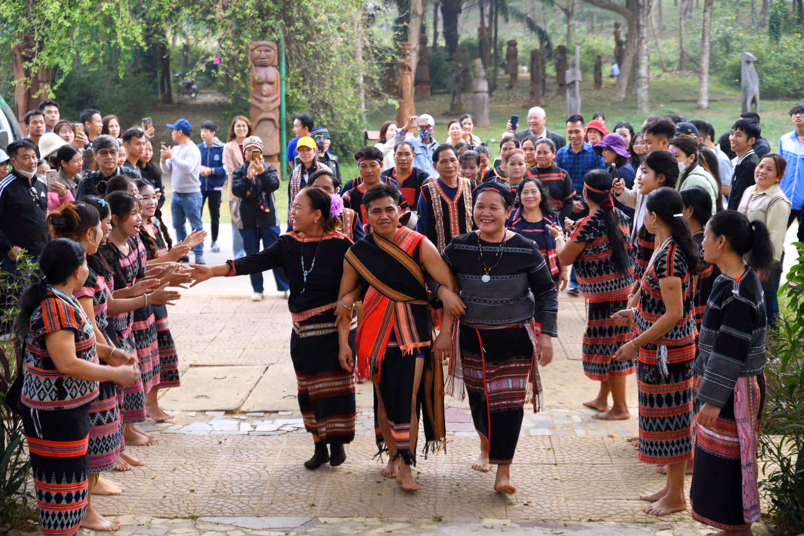 Nhân dịp đầu năm mới 2026 - thời điểm mang ý nghĩa của sự viên mãn, trọn vẹn và khởi đầu tốt lành, Làng Văn hóa – Du lịch các dân tộc Việt Nam (xã Đoài Phương, Hà Nội) đã phối hợp với các nhóm đồng bào dân tộc Tây Nguyên tổ chức tái hiện lễ cưới truyền thống. Hoạt động không chỉ góp phần giới thiệu những nghi lễ hôn nhân giàu bản sắc của đồng bào Tây Nguyên, mà còn giúp công chúng hiểu rõ hơn về giá trị văn hóa, phong tục tập quán được gìn giữ qua nhiều thế hệ.