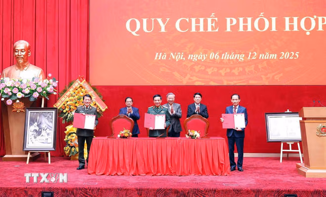 Chiều 6/12, tại Hà Nội, Bộ Công an phối hợp Bộ Quốc phòng và Bộ Ngoại giao tổ chức Lễ ký Quy chế phối hợp công tác giữa ba Bộ.