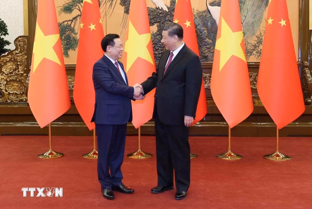 Hội kiến Tổng Bí thư, Chủ tịch nước Trung Quốc Tập Cận Bình, Chủ tịch Quốc hội Vương Đình Huệ đề nghị hai bên nâng tầm kết nối chiến lược, tạo động lực tăng trưởng mới cho hợp tác hai nước.