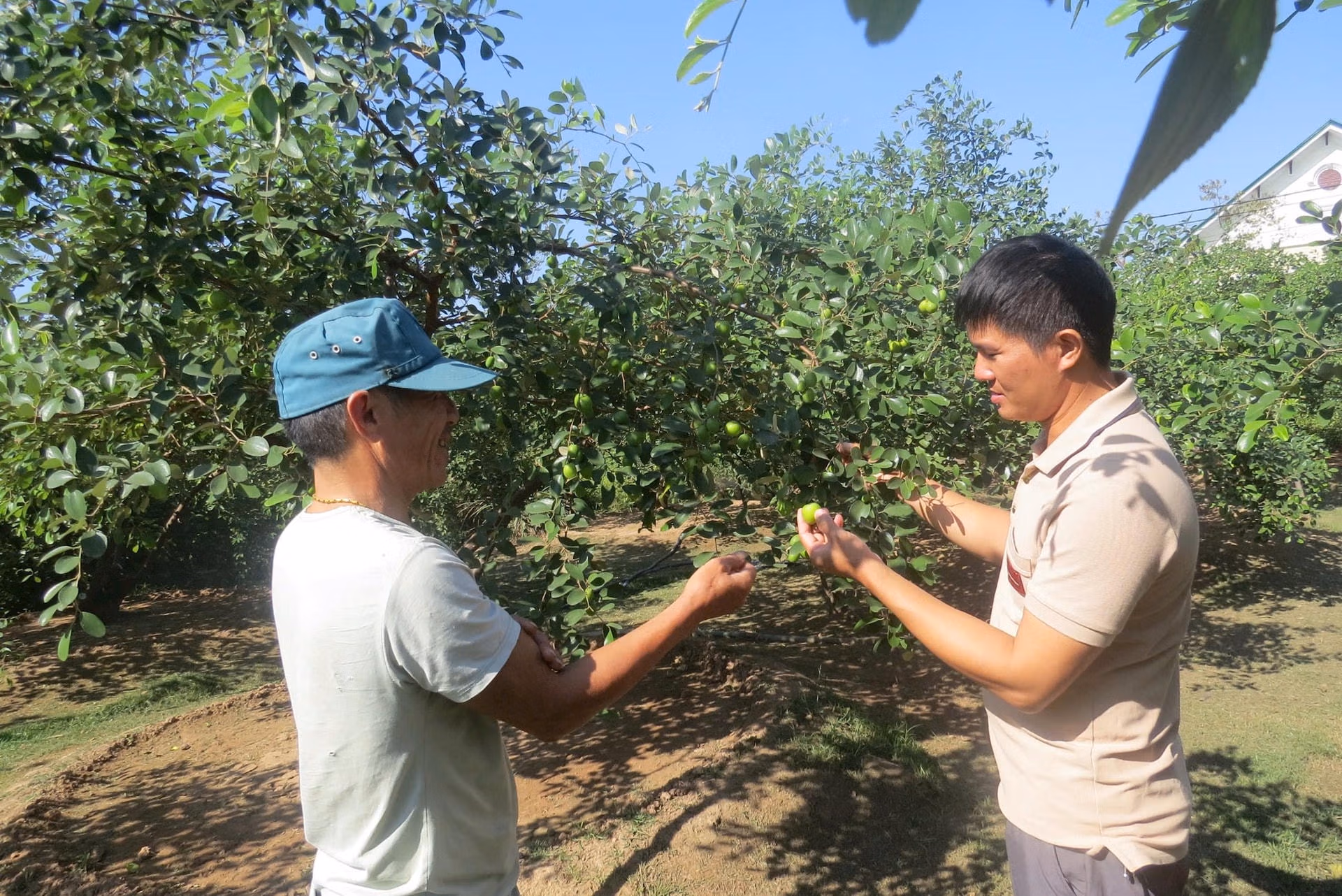 Ông Nguyễn Đắc Tuân - Chủ nhiệm Tổ hợp tác trồng táo Bàng La cho biết: Điều may mắn nhất chính là sau bão, những cây táo không bị bật gốc nên có thể phục hồi nhanh chóng. Tuy nhiên, hoa táo nở không đúng cữ, thời tiết hanh khô kéo dài dẫn đến lượng quả đậu khá ít.