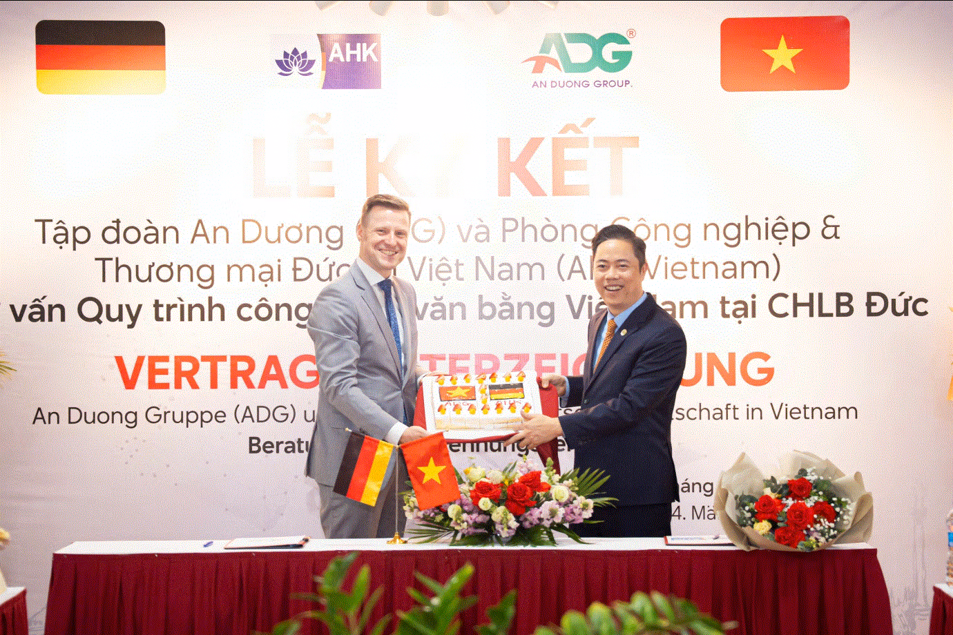 Sau quá trình trao đổi và đàm phán thì Tập đoàn An Dương (ADG) và Phòng Công nghiệp và Thương mại Đức tại Việt Nam (AHK VietNam) đã cùng thống nhất được một thỏa thuận hợp tác về việc “Tư vấn quy trình công nhận bằng Việt Nam tại CHLB Đức” cho học sinh Việt Nam sang học tập, làm việc tại CHLB Đức do Tập đoàn An Dương tuyển chọn, đào tạo.