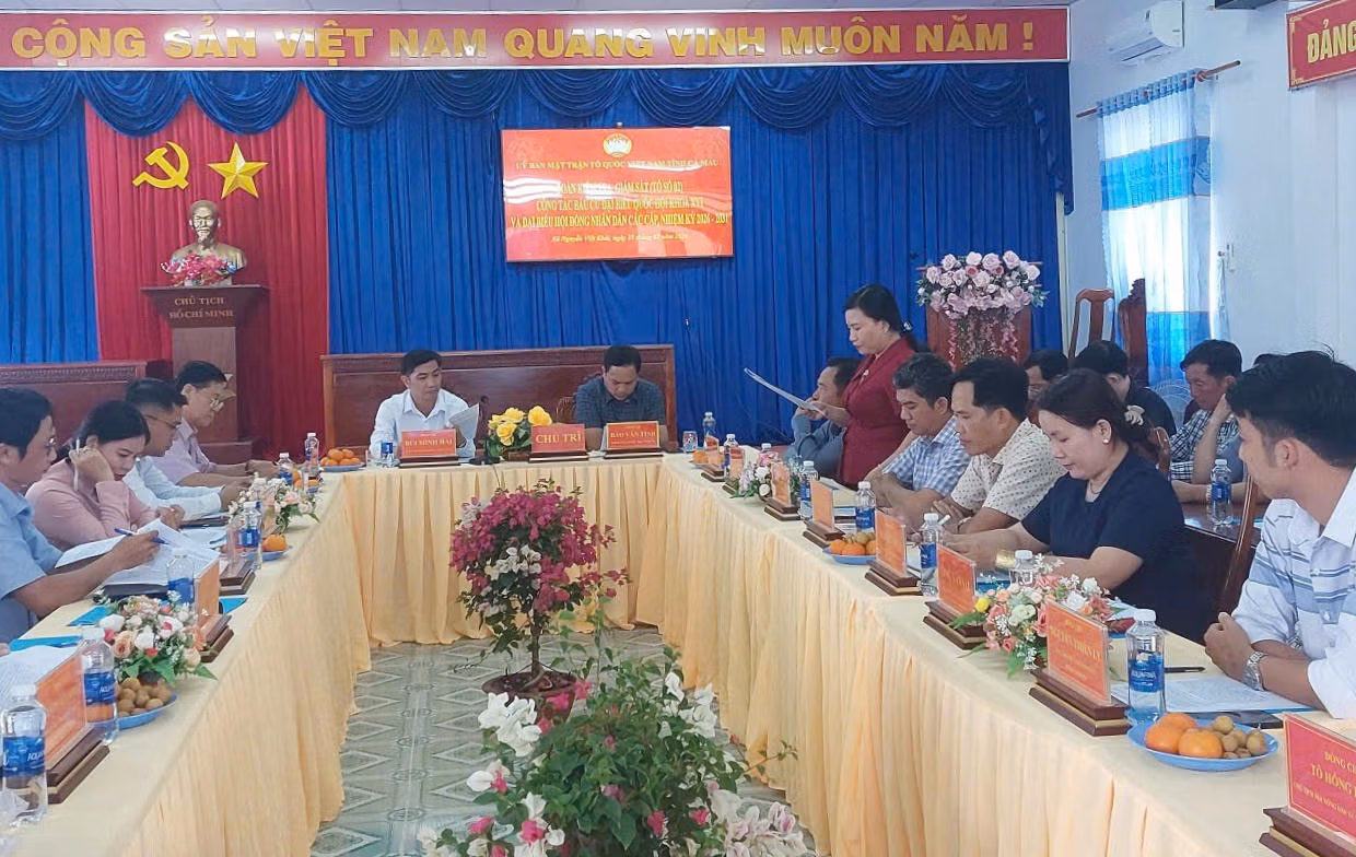 Đoàn công tác của Ban Thường trực Uỷ ban MTTQ Việt Nam tỉnh Cà Mau tập trung giám sát tiến độ triển khai các mặt công tác trọng tâm của xã Nguyễn Việt Khái, bao gồm: công tác tuyên truyền, việc lập và niêm yết danh sách cử tri cũng như người ứng cử; kết quả hiệp thương lần thứ ba; cùng phương án tổ chức vận động bầu cử và giám sát hoạt động của Uỷ ban Bầu cử cấp xã.