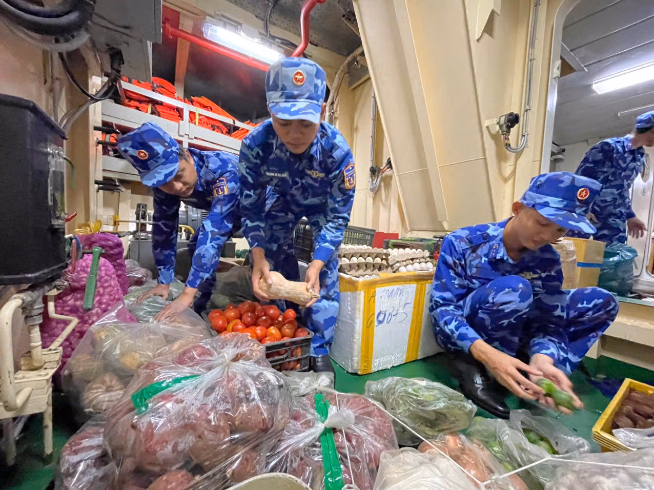 Cùng với công tác chuẩn bị về con người, các mặt bảo đảm hậu cần, kỹ thuật được triển khai đồng bộ, chặt chẽ. Lương thực, thực phẩm, nhu yếu phẩm phục vụ sinh hoạt và trong dịp Tết được chuẩn bị đầy đủ; nguyên liệu gói bánh chưng, bánh kẹo ngày Xuân được sắp xếp khoa học, bảo đảm để cán bộ, chiến sĩ vừa hoàn thành nhiệm vụ, vừa đón Tết trên biển trong không khí ấm áp, nghĩa tình.