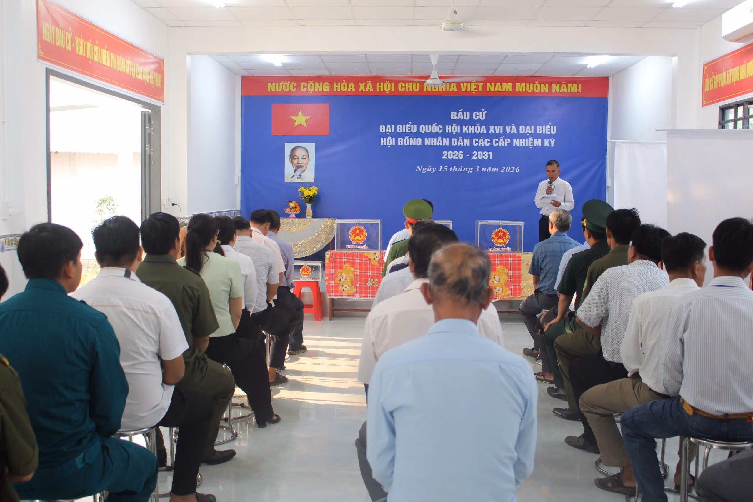 Sáng ngày 15/3, không khí ngày mới ở xã biên giới Mỹ Quý, tỉnh Tây Ninh bắt đầu với nhịp điệu sôi động hơn thường lệ. Từ hệ thống loa truyền thanh, những lời nhắc cử tri đi bầu cử vang lên trong làn sương sớm. Tại sân nhà văn hóa ấp 6 (tổ bầu cử số 8), từ sáng sớm đã rộn ràng bước chân cử tri. Người già, thanh niên, công nhân, nông dân… ai cũng chỉnh tề trong trang phục gọn gàng, tay cầm thẻ cử tri, kiên nhẫn chờ đến lượt thực hiện quyền bầu cử.