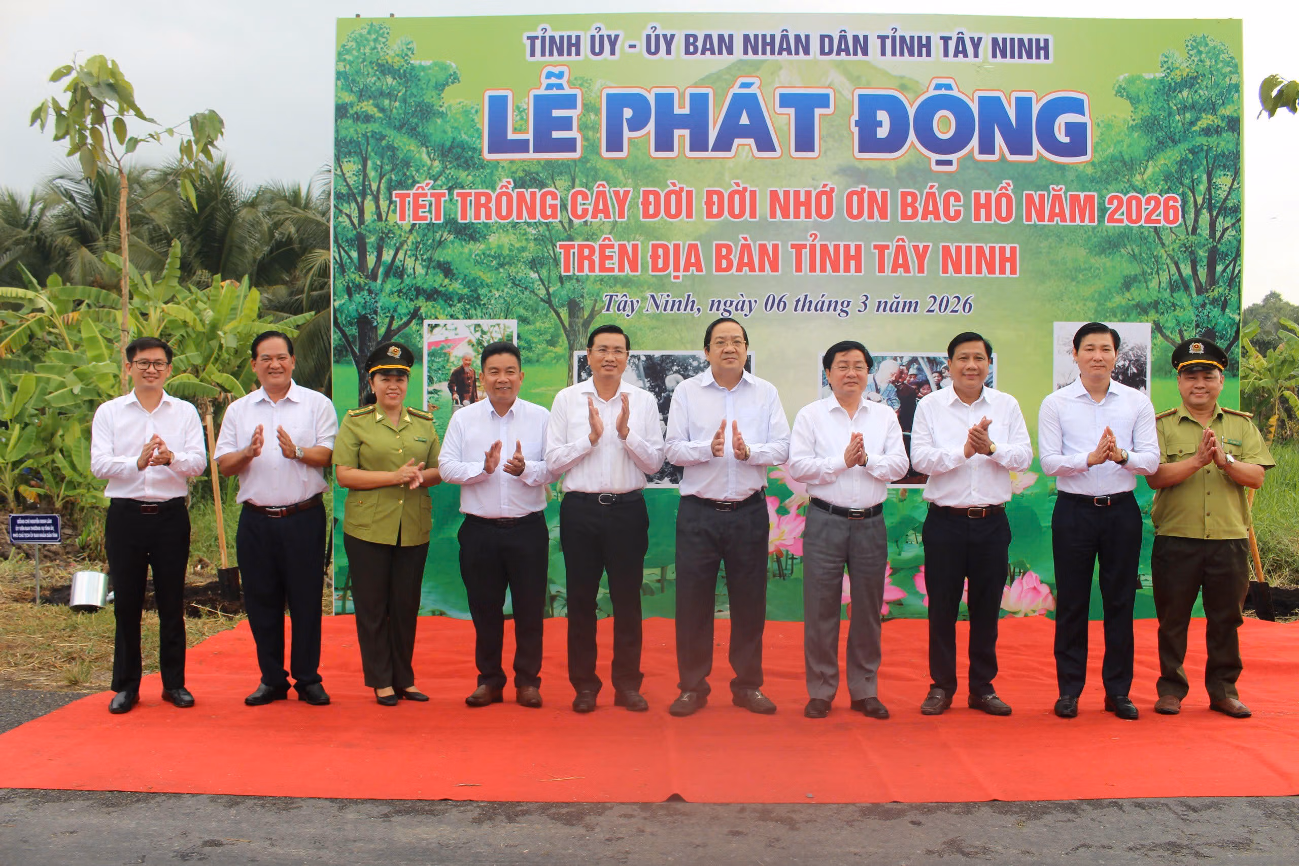 Ngày 6/3, tại phường Khánh Hậu, UBND tỉnh Tây Ninh tổ chức lễ phát động “Tết trồng cây đời đời nhớ ơn Bác Hồ” năm 2026. Sự kiện năm nay mang thông điệp ý nghĩa: “Phát triển không gian xanh gắn với bảo vệ môi trường, thích ứng biến đổi khí hậu và xây dựng đô thị bền vững trên địa bàn tỉnh”.