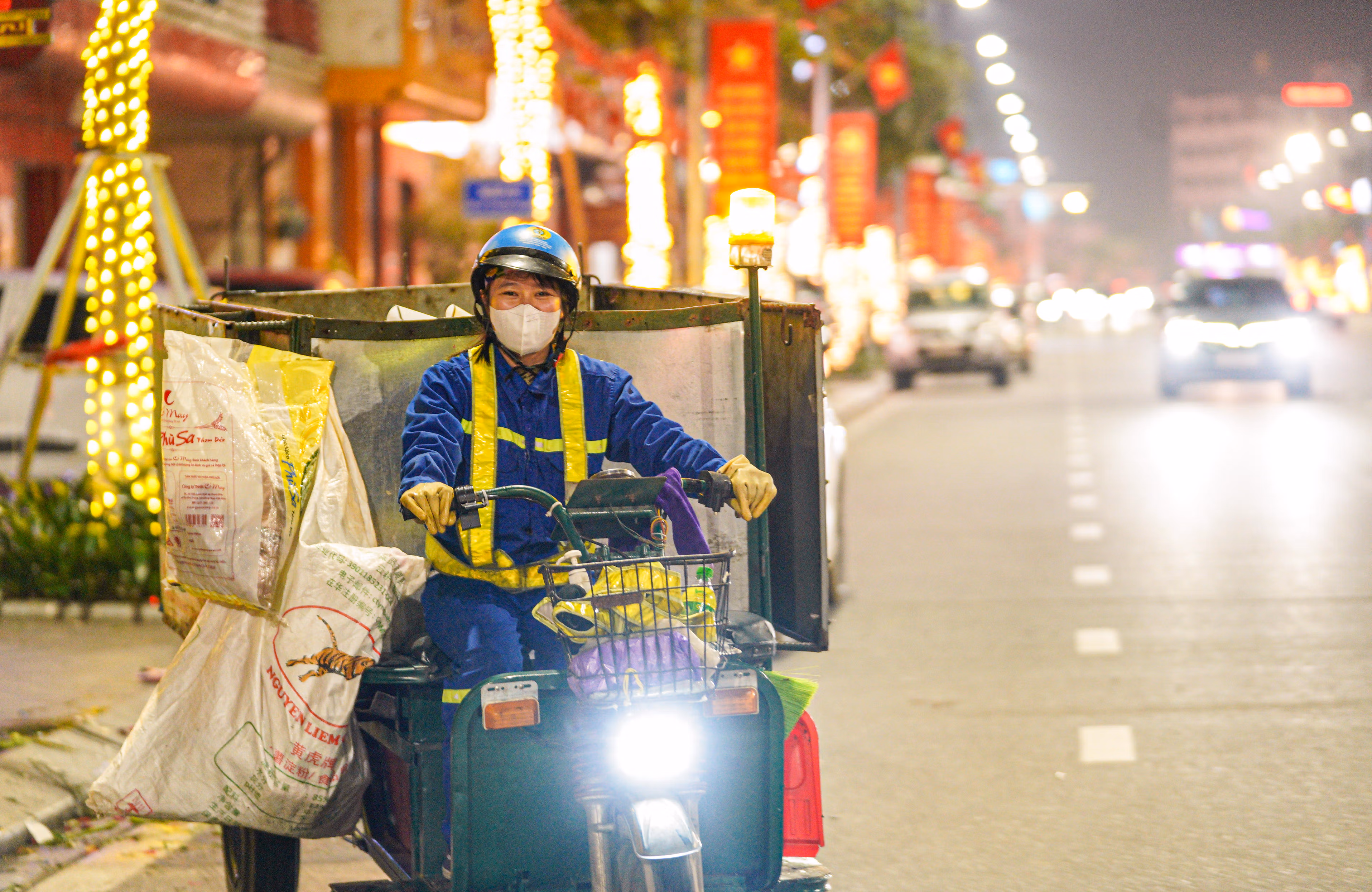 Cùng ca trực ấy có chị Nguyễn Thị Hương, nhiều năm nay chỉ nghỉ duy nhất ngày mồng 1 trước khi trở lại làm việc. “Mồng 2 rác vẫn rất nhiều. Người dân đi lễ, đi chúc Tết, ăn uống đông, nếu không thu gom kịp sẽ tồn đọng ngay. Với tôi, giao thừa gắn với tiếng chổi tre và mùi rác quen thuộc. Bao giờ tuyến sạch mới được về, có hôm hơn 3 giờ sáng mới xong”, chị kể.