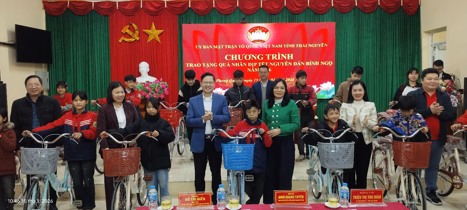 Ngày 15/1, Đoàn công tác do ông Đinh Quang Tuyên, Phó Bí thư Tỉnh ủy, Chủ tịch Ủy ban MTTQ Việt Nam tỉnh Thái Nguyên làm Trưởng đoàn đến thăm, trao quà Tết cho các hộ gia đình và học sinh có hoàn cảnh khó khăn tại phường Đức Xuân và xã Phong Quang.
