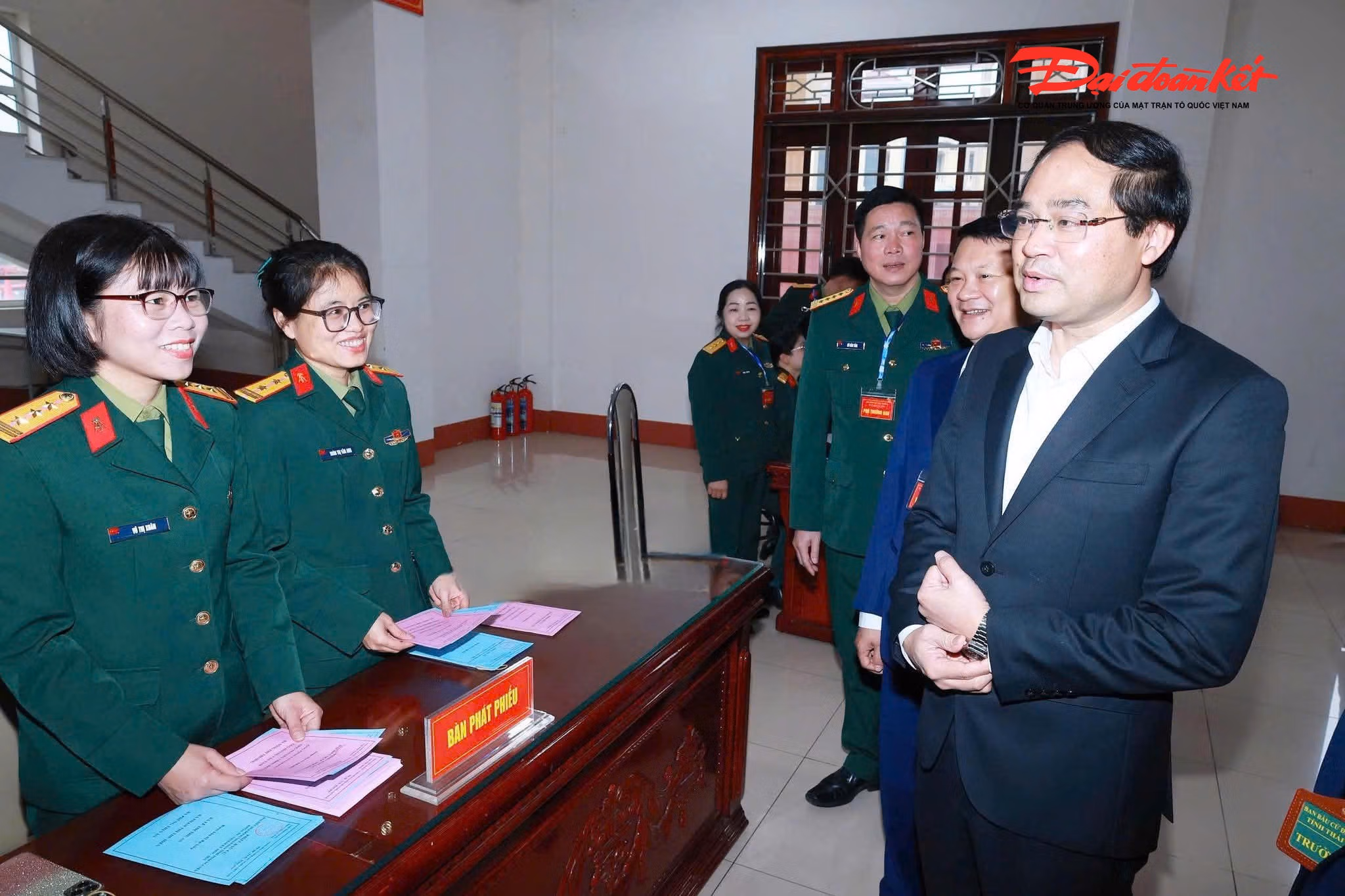 Ông Đinh Quang Tuyên - Phó Bí thư Tỉnh ủy, Chủ tịch Ủy ban MTTQ Việt Nam tỉnh Thái Nguyên, kiểm tra công tác bầu cử tại một số khu vực bỏ phiếu ở phường Bắc Kạn và xã Chợ Mới.
