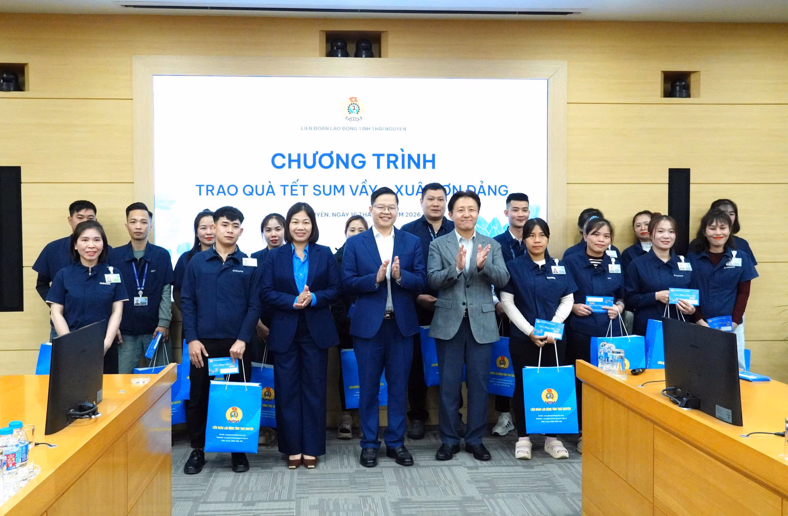 Ngày 16/1, với tinh thần “Tất cả đoàn viên, người lao động đều có Tết”, Liên đoàn Lao động (LĐLĐ) tỉnh Thái Nguyên đã tổ chức chương trình “Tết Sum vầy - Xuân ơn Đảng” tại Công ty TNHH Samsung Electronics Việt Nam Thái Nguyên (SEVT).