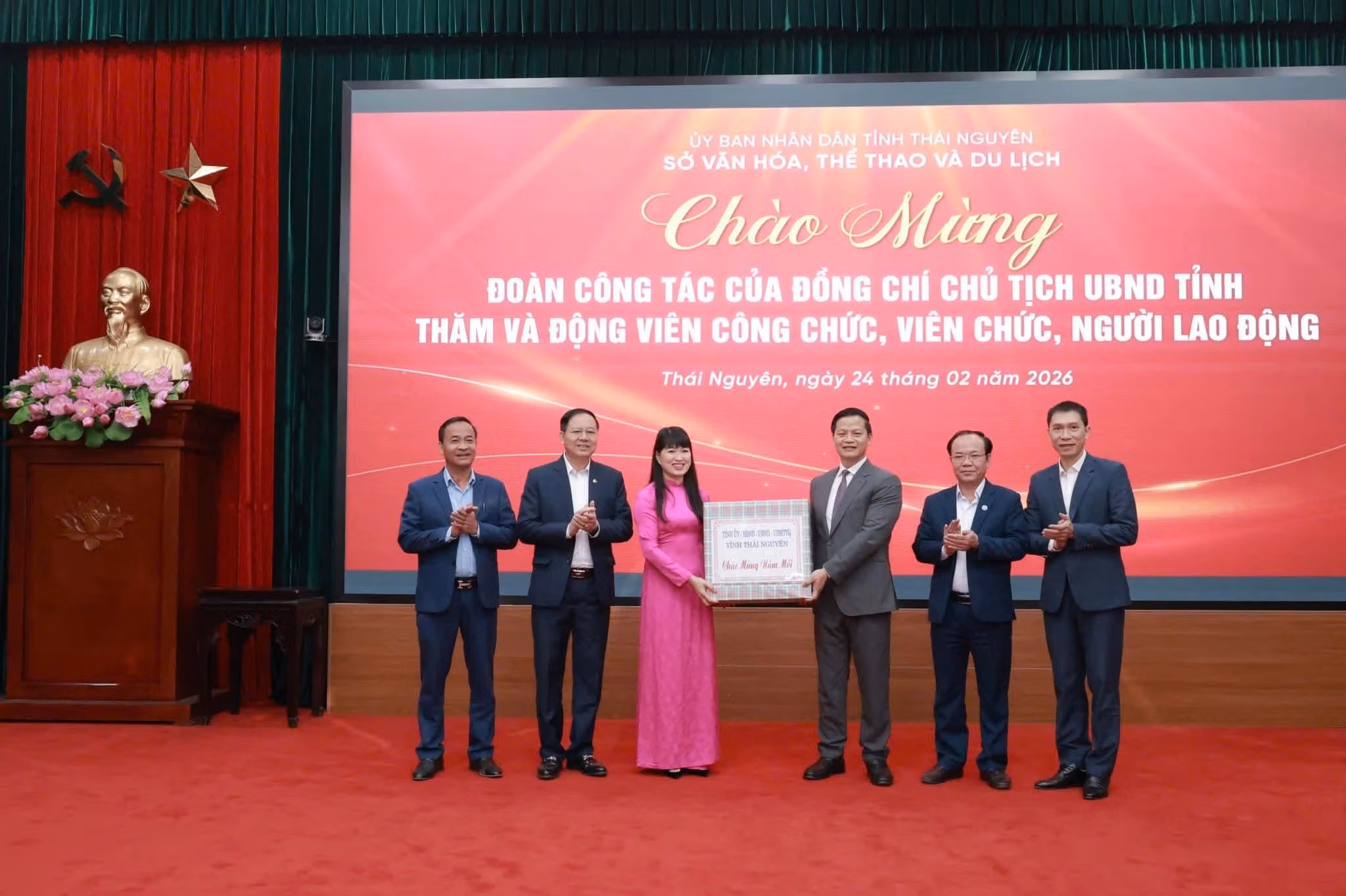 Nhân dịp đầu Xuân Bính Ngọ 2026, ngày 24/2, ông Vương Quốc Tuấn, Ủy viên Trung ương Đảng, Phó Bí thư Tỉnh ủy, Chủ tịch UBND tỉnh Thái Nguyên đã đến thăm, động viên và giao nhiệm vụ cho cán bộ, công chức, viên chức, người lao động Sở Văn hóa, Thể thao và Du lịch tỉnh Thái Nguyên.