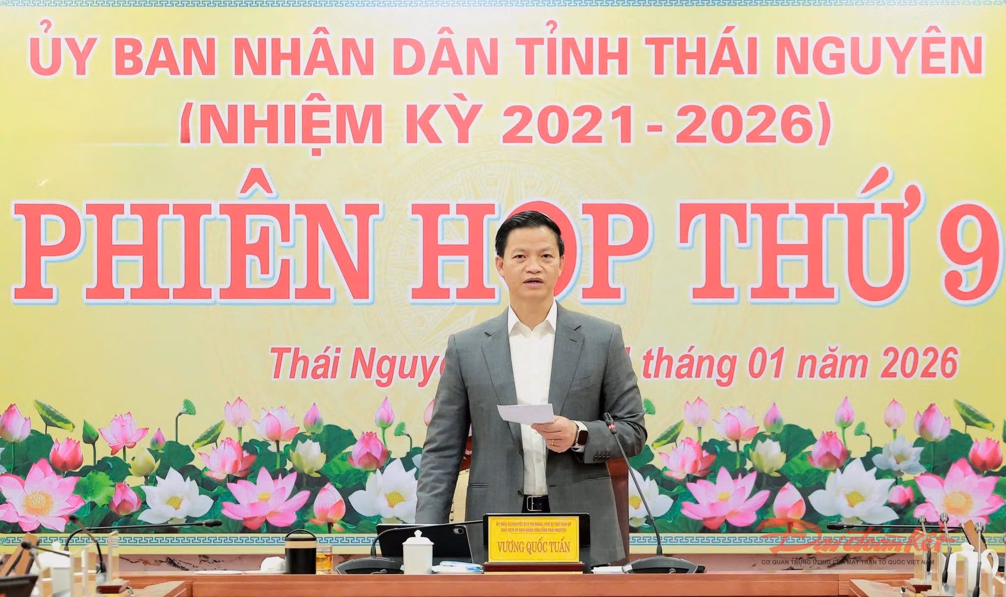 Ngày 14/1, tại phiên họp UBND tỉnh Thái Nguyên lần thứ 9, Chủ tịch UBND tỉnh Thái Nguyên Vương Quốc Tuấn chỉ đạo triển khai đồng bộ các nhiệm vụ trọng tâm nhằm thực hiện mục tiêu phát triển kinh tế - xã hội năm 2026.