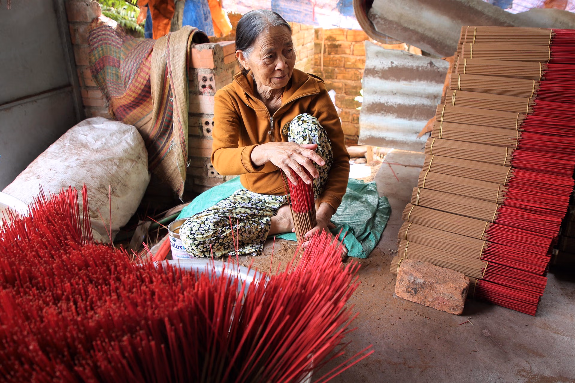 Những ngày sát Tết Nguyên đán 2026, làng hương Quán Hương (Đà Nẵng) lại khoác lên mình tấm áo rực rỡ của những bó tăm chân đỏ, cùng mùi hương thơm nồng nàn của quế, trầm. Hơn 100 hộ dân ở nơi này đang tất bật với thời gian để kịp mang hương Tết đến với mọi nhà.